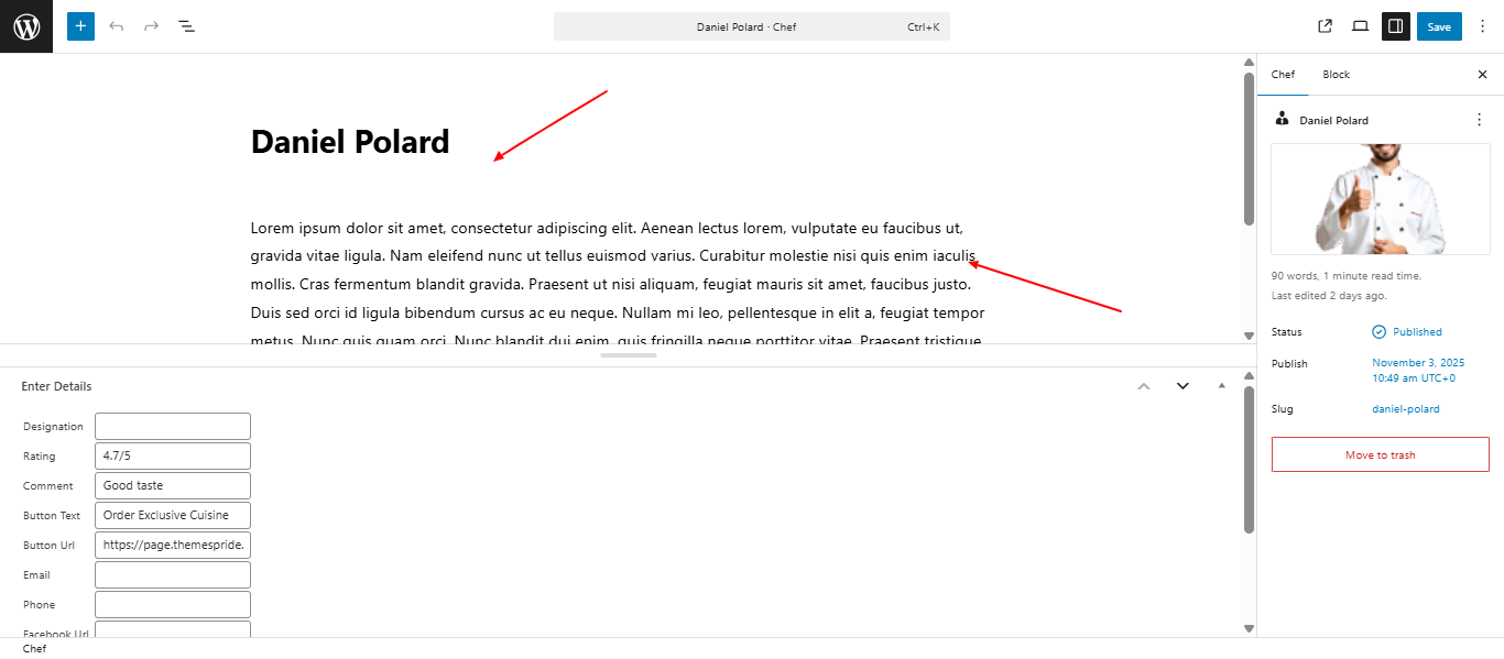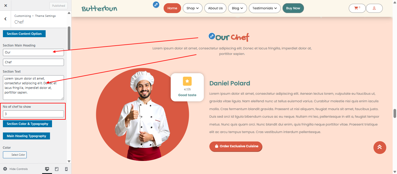 Open "Chef" from the Theme Settings panel in the Customizer.