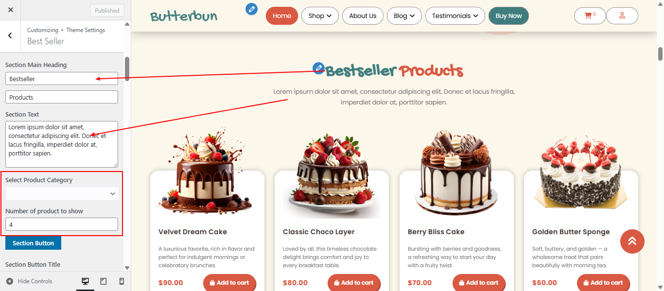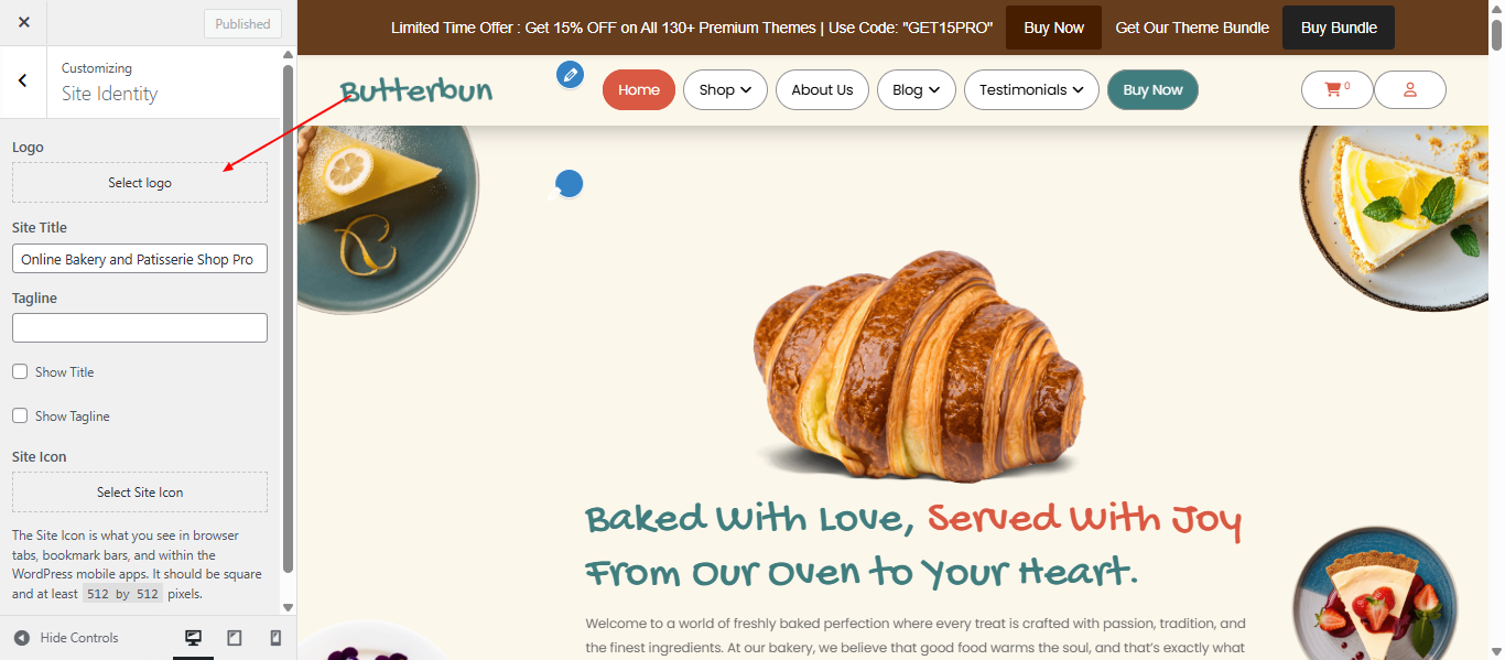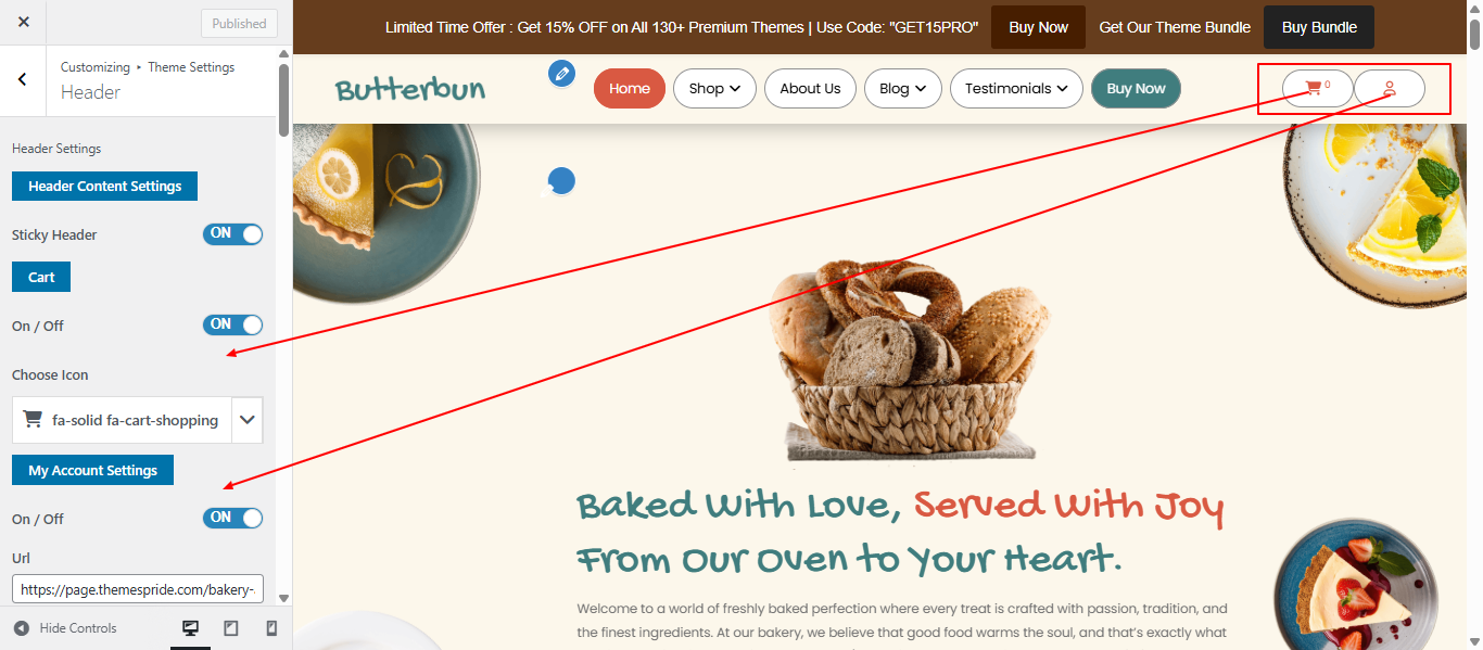 Open Theme Settings → Nearby Bakery in the Customizer.