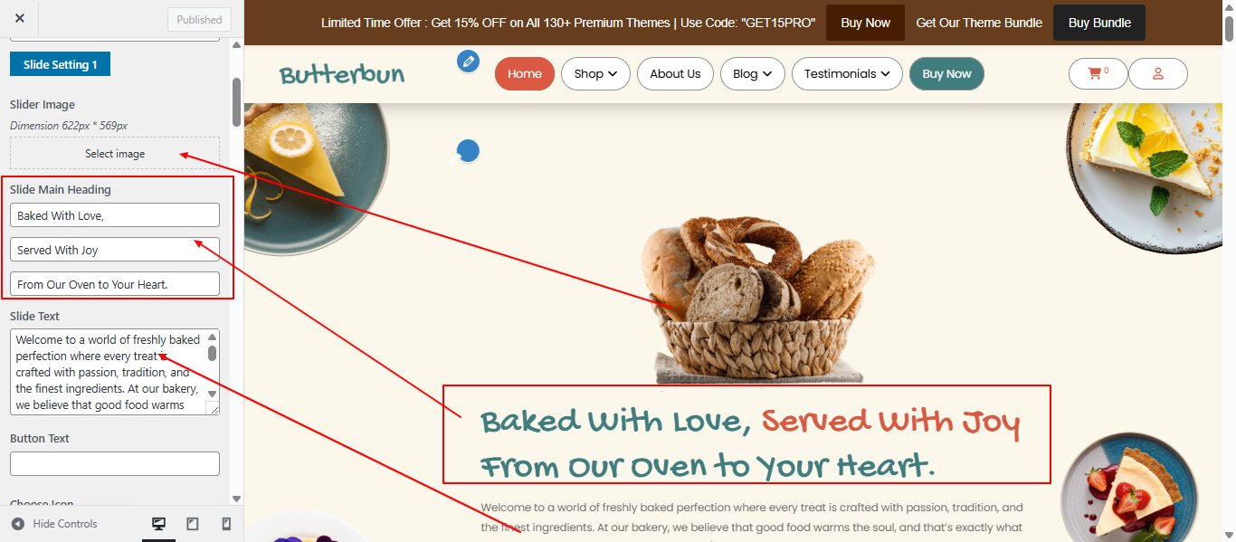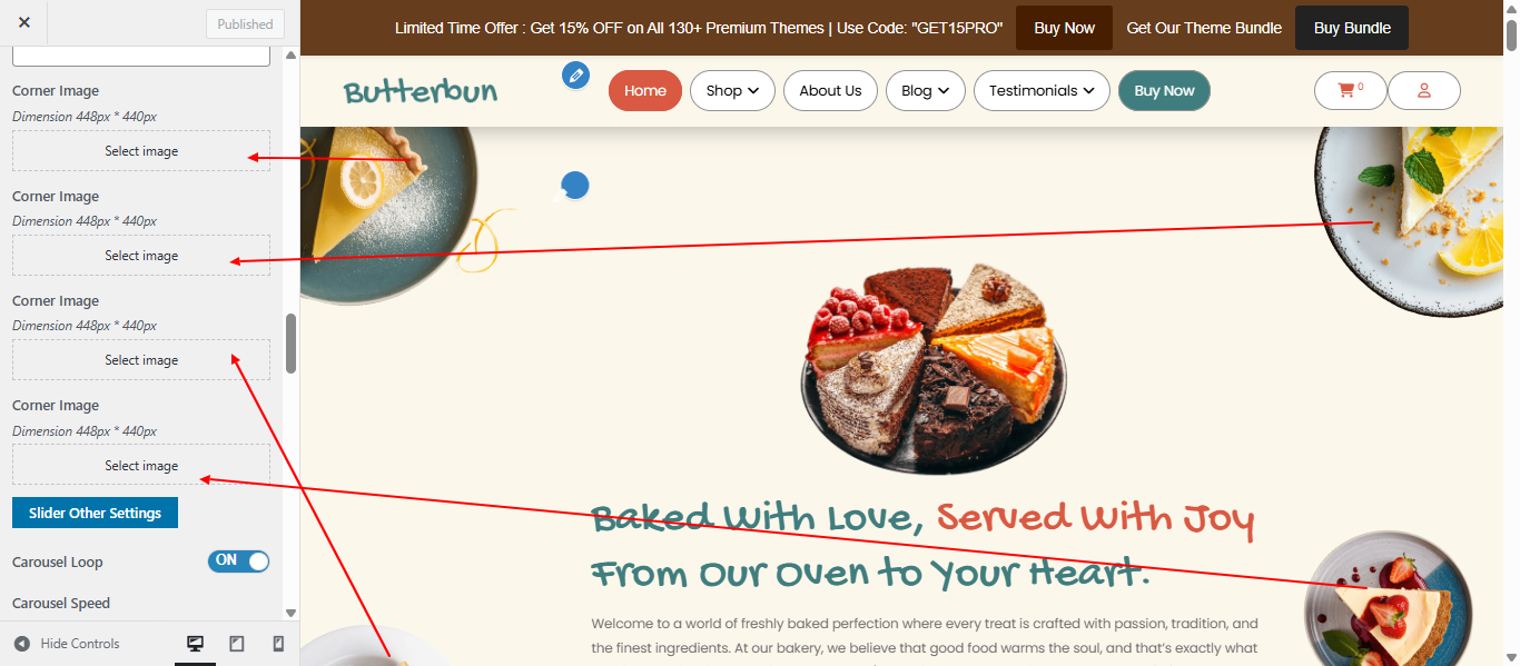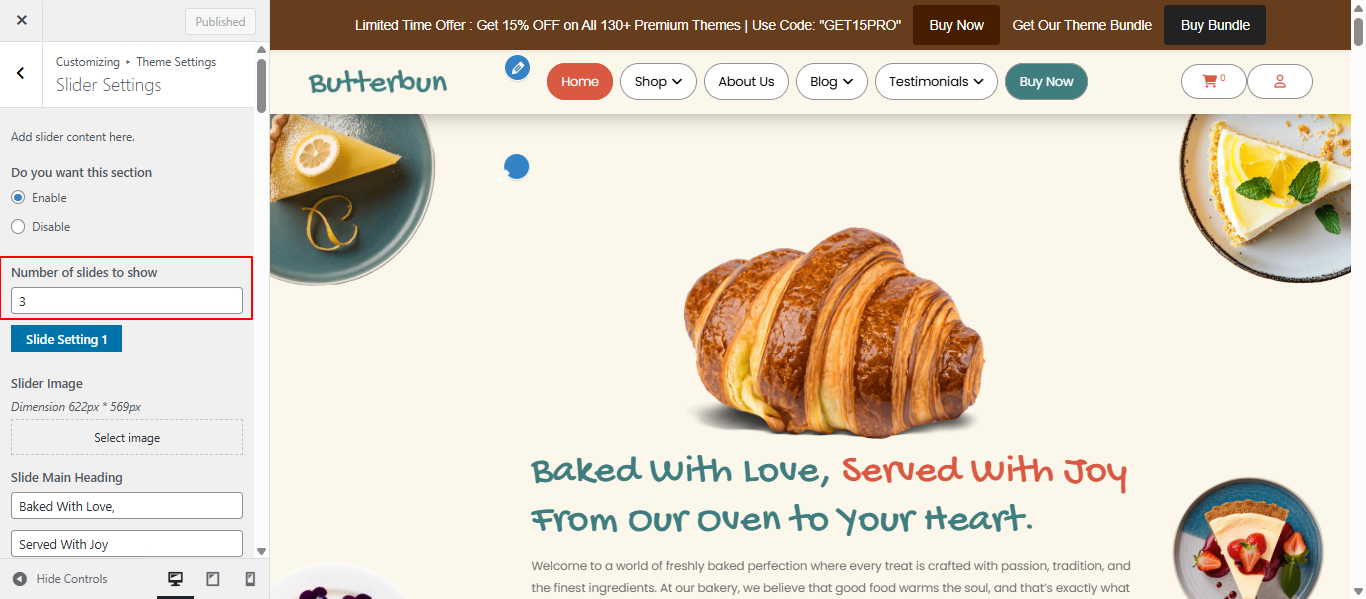 Open "Slider" from the Theme Settings panel in the Customizer.