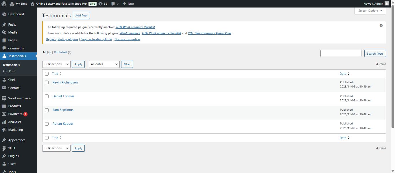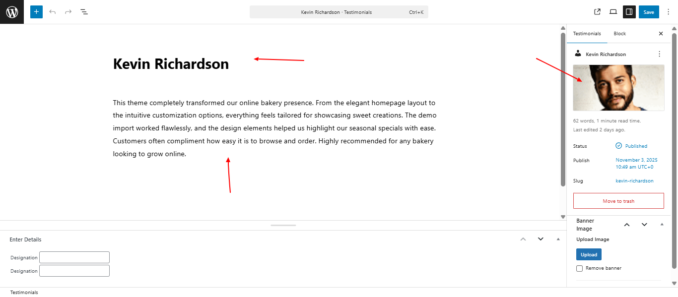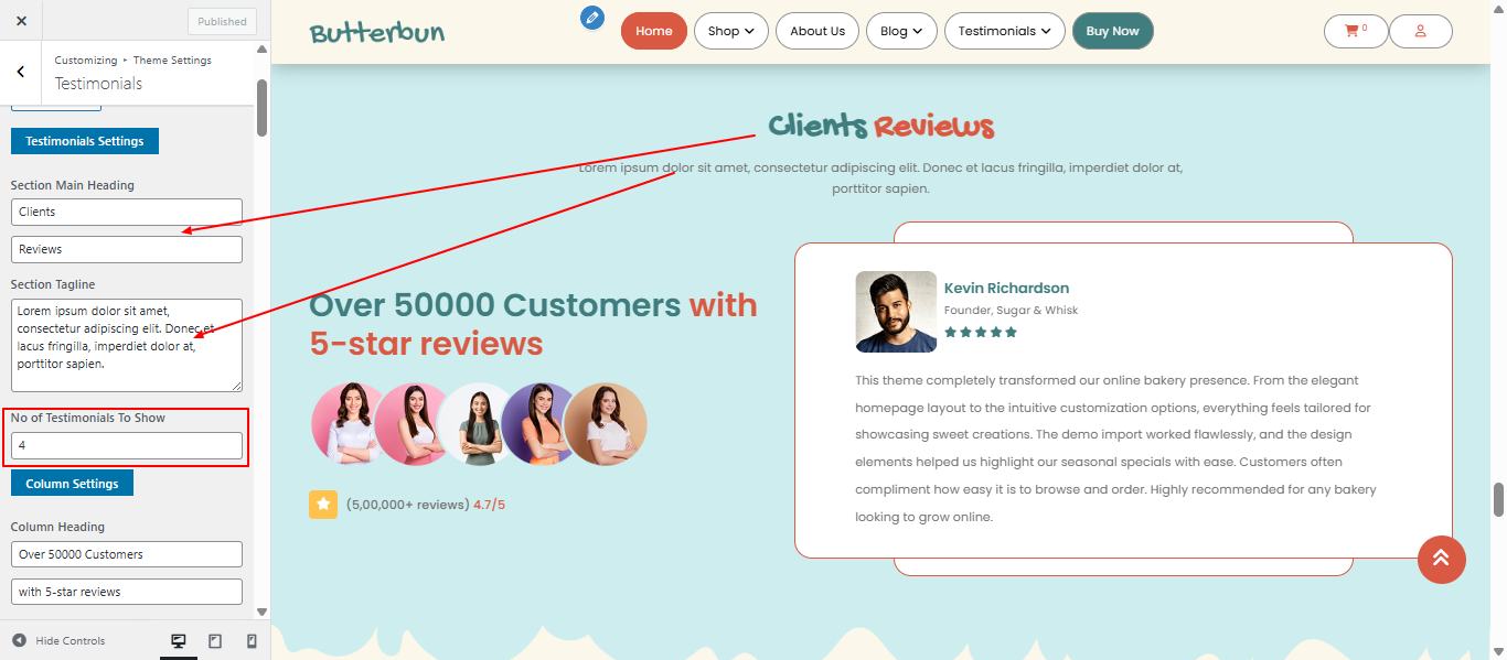 Open "Testimonials" from the Theme Settings panel in the Customizer.