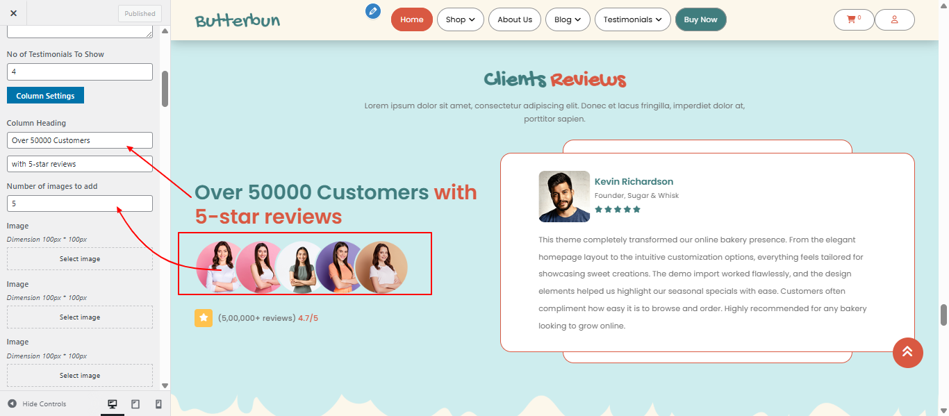 Adjust the number of testimonials to show, and fill in each box with your content.