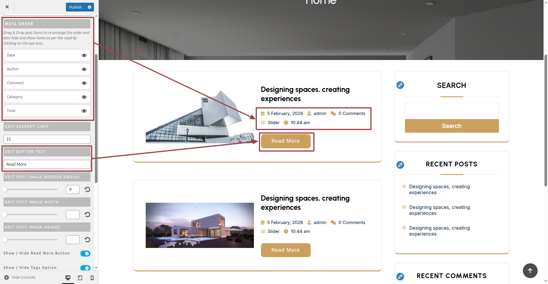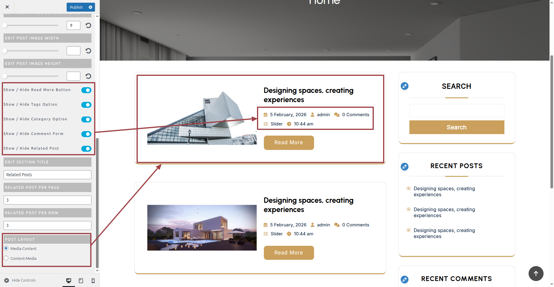 From Menu Click Appearance than Customize>> Custom Home Page >> TP Blog Option