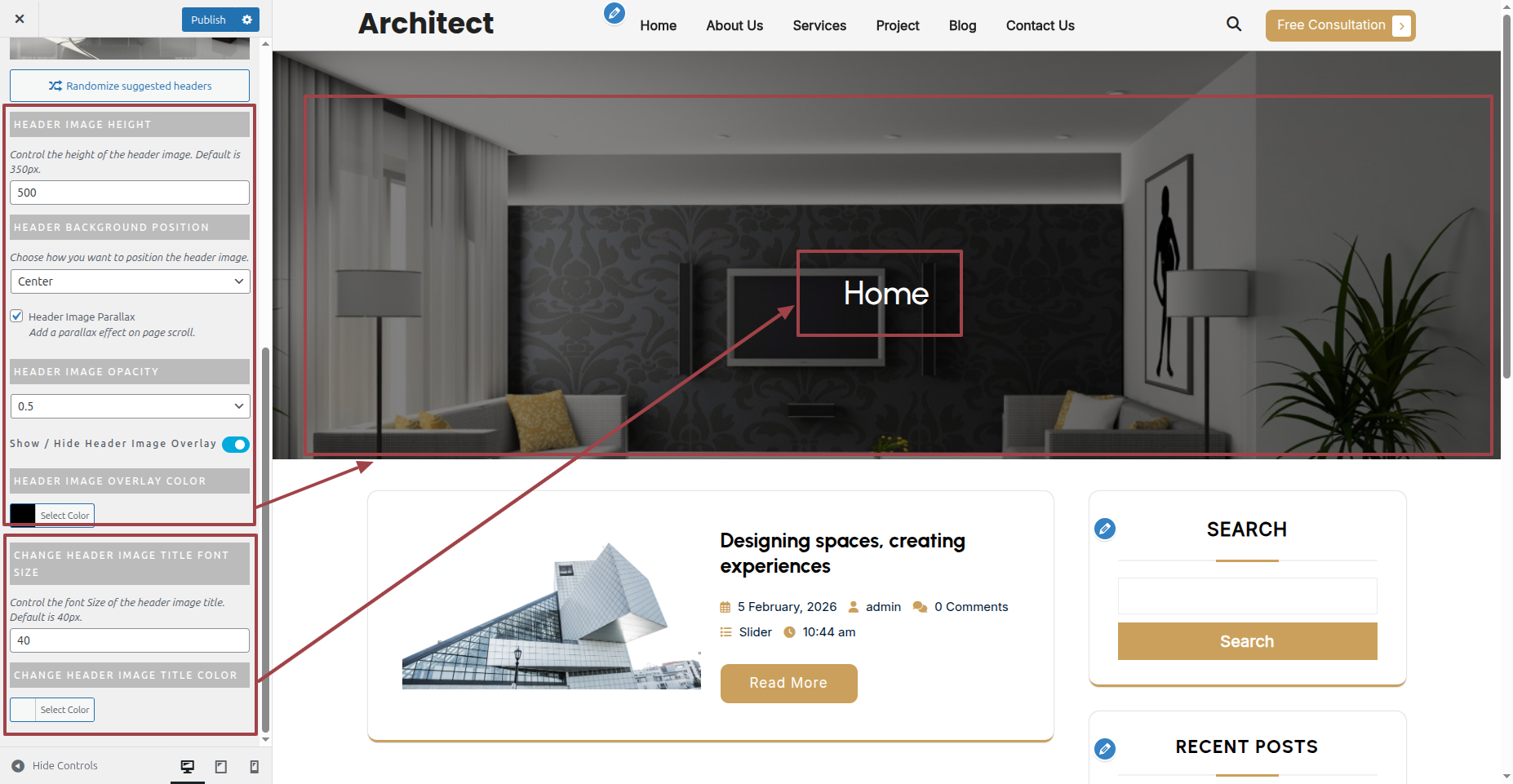 These are the settings for the Header Image. You can make changes to the Header Image.