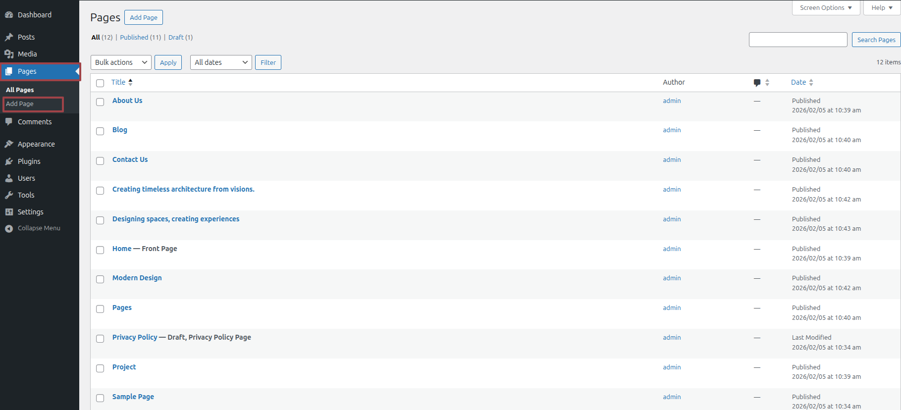 Go to the Dashboard >> Appearance >> pages>> Add new pages