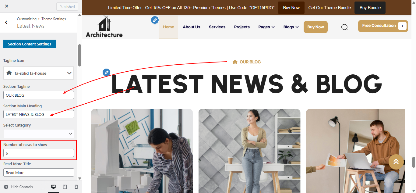 Open the "Blogs" section from Theme Settings.