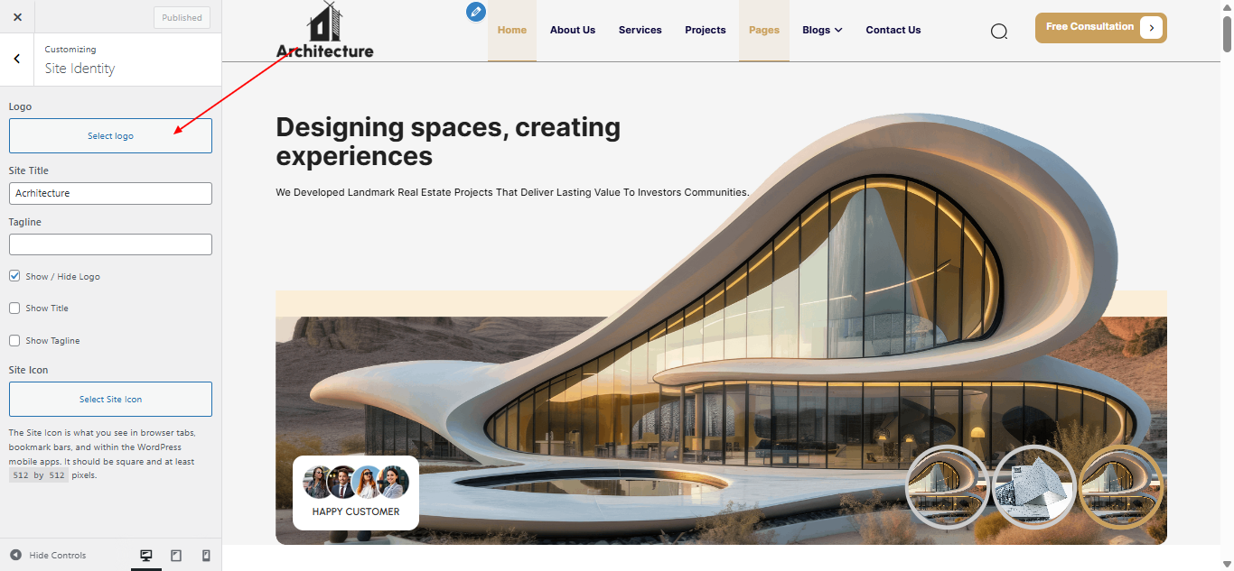 Navigate to Appearance → Customize → Site Identity and upload your logo.