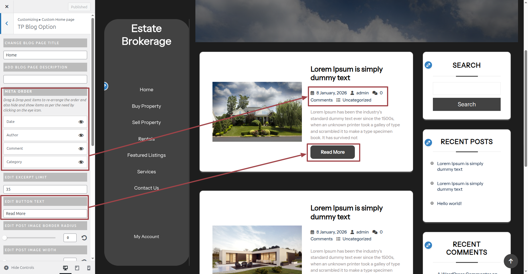 From Menu Click Appearance than Customize>> Custom Home Page >> TP Blog Option