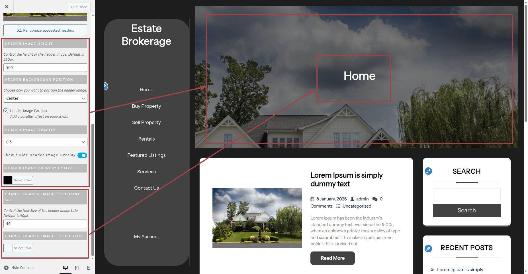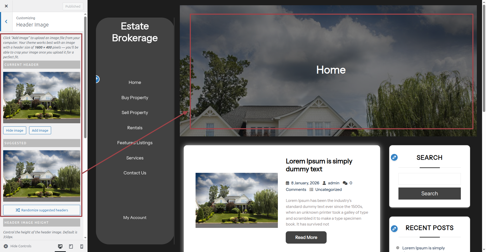 These are the settings for the Header Image. You can make changes to the Header Image.