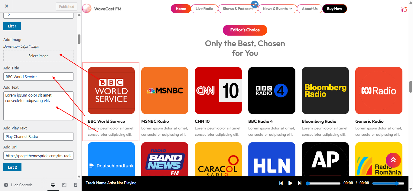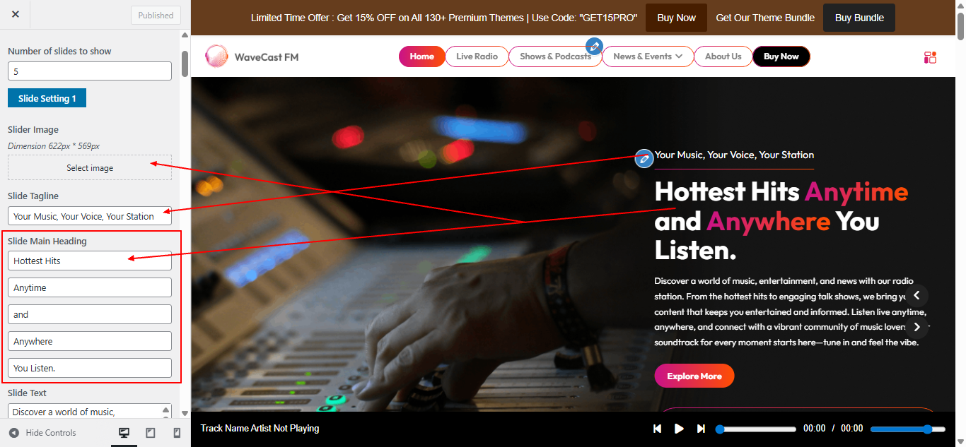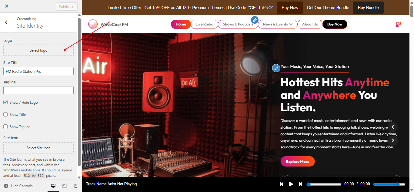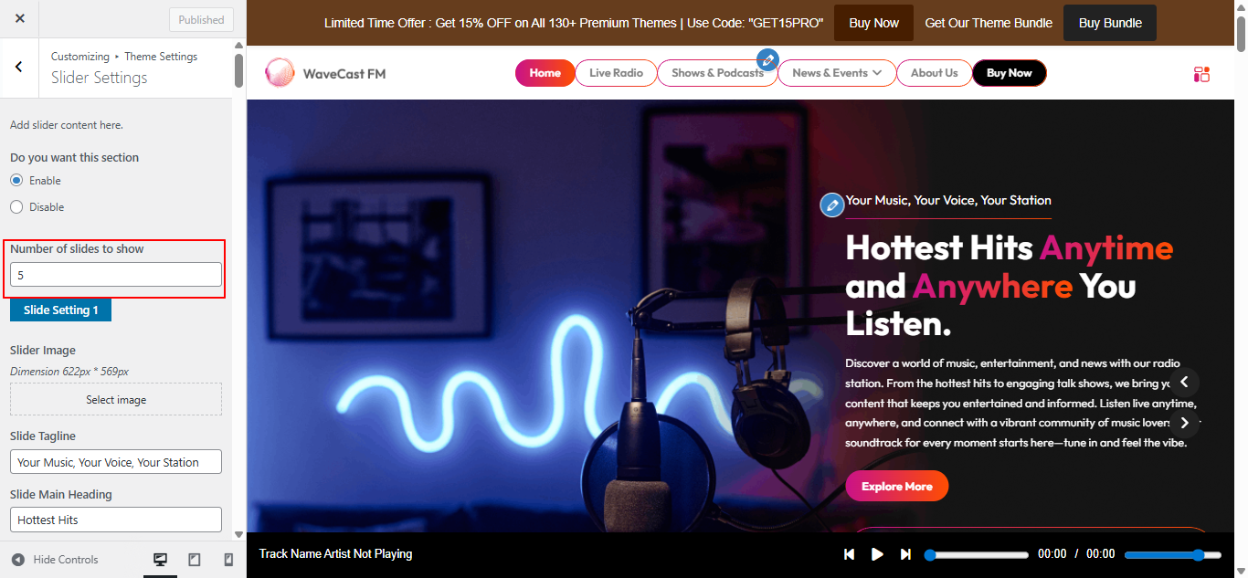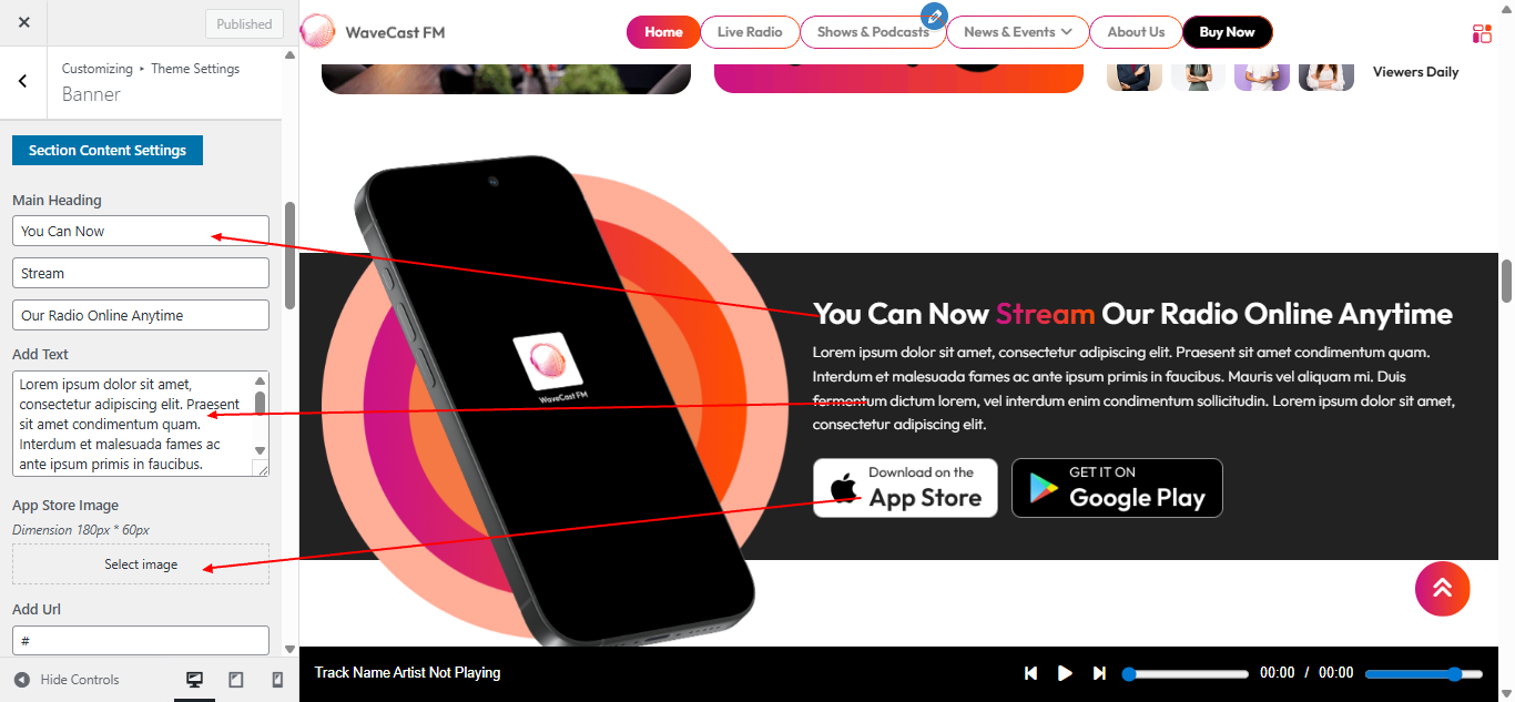 Open Theme Settings → Live Player in the Customizer.