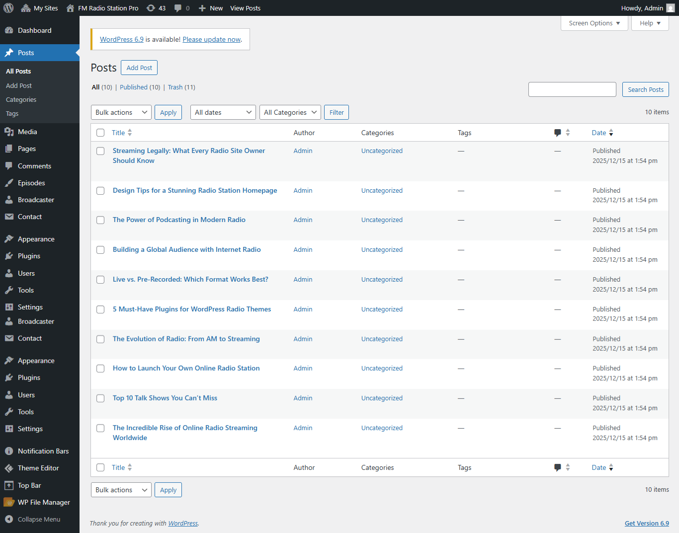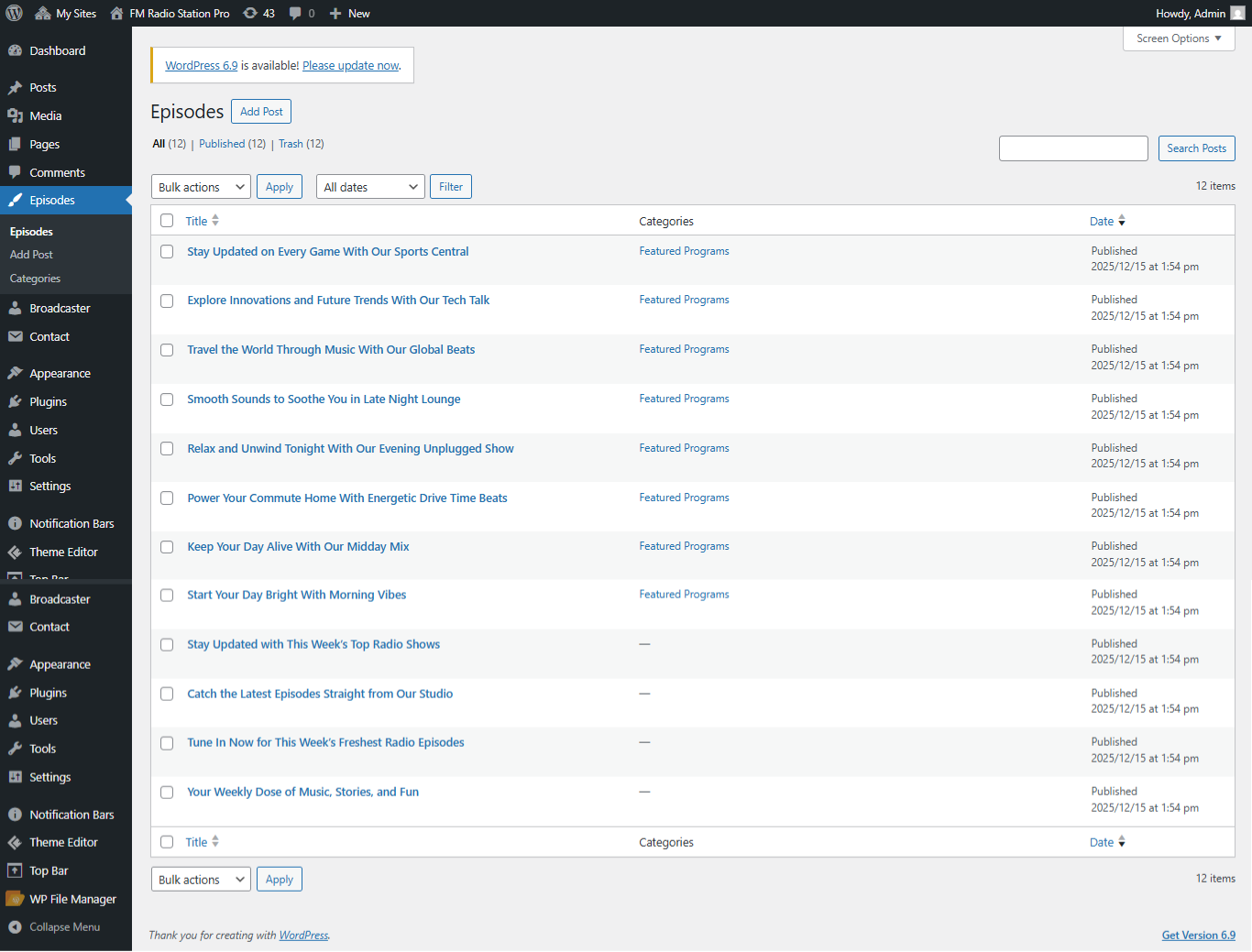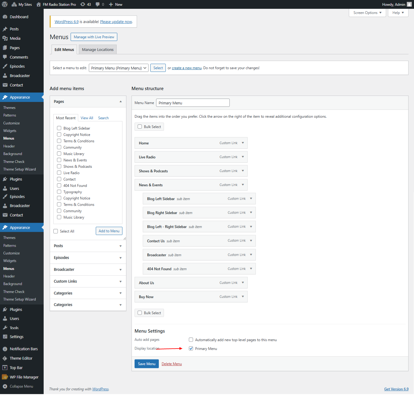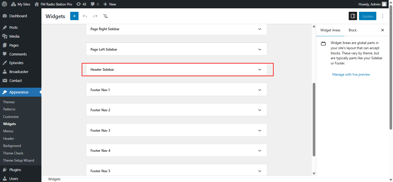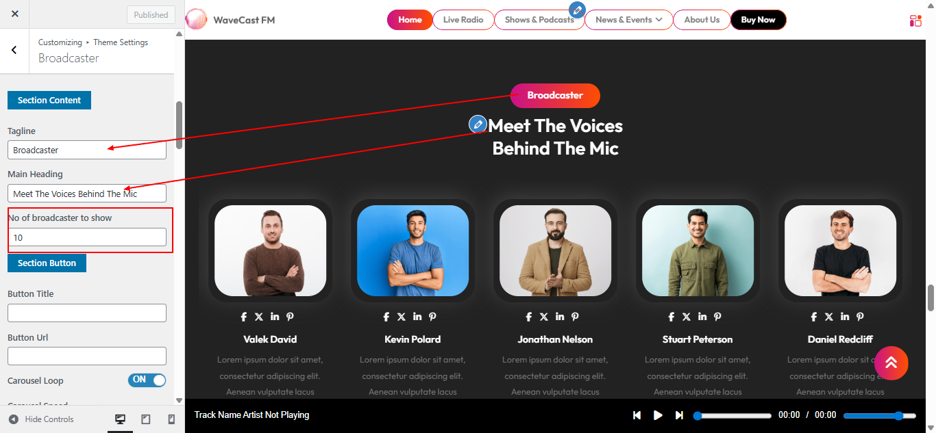 Open "Broadcaster" from the Theme Settings panel in the Customizer.