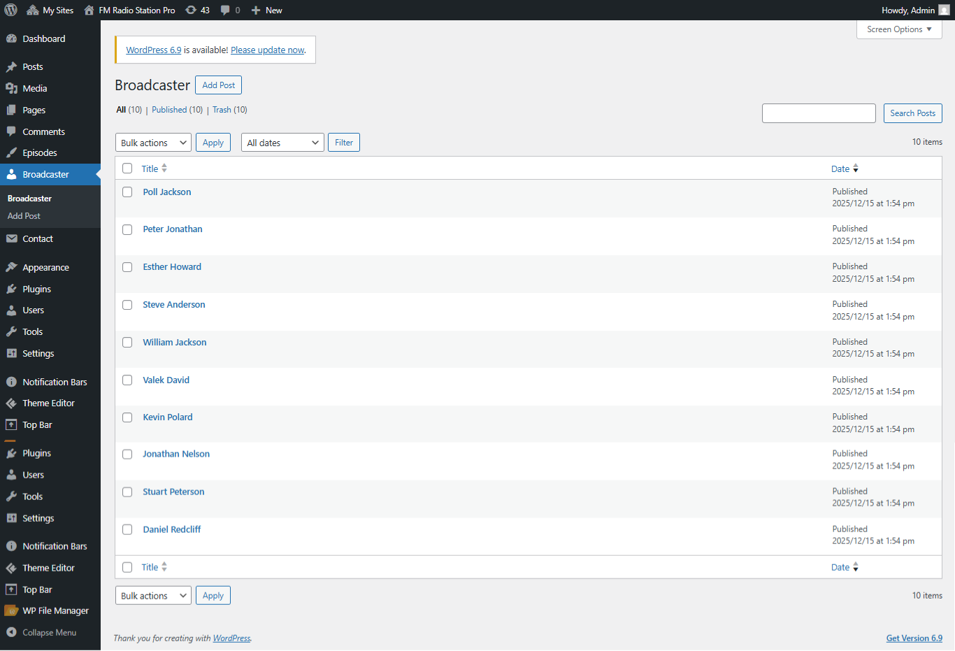 Go to Dashboard → Broadcaster to view demo broadcaster.