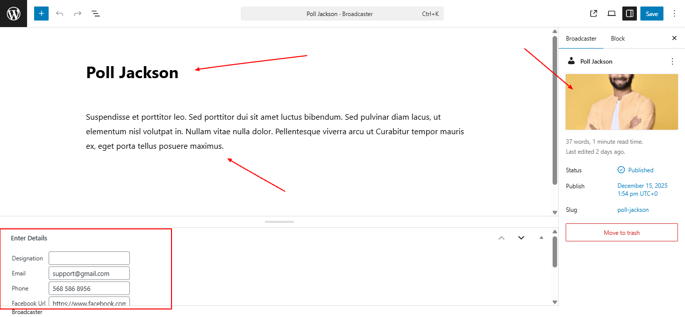 Adjust the number of broadcaster to show, and fill in each box with your content.