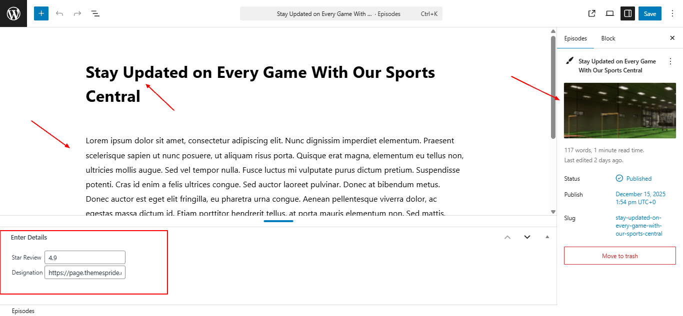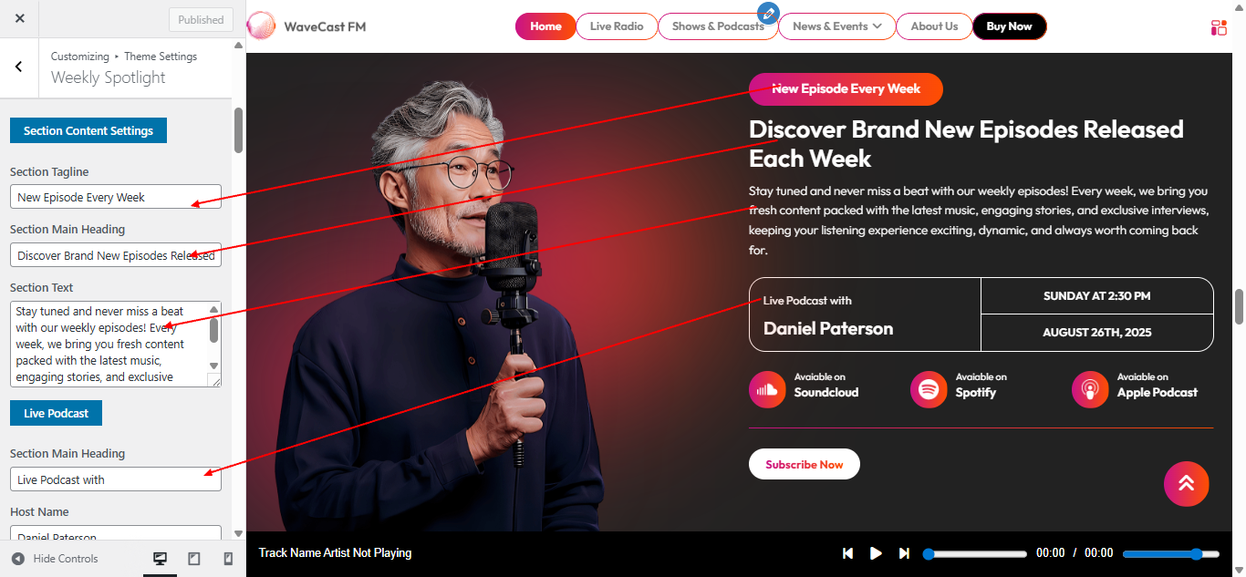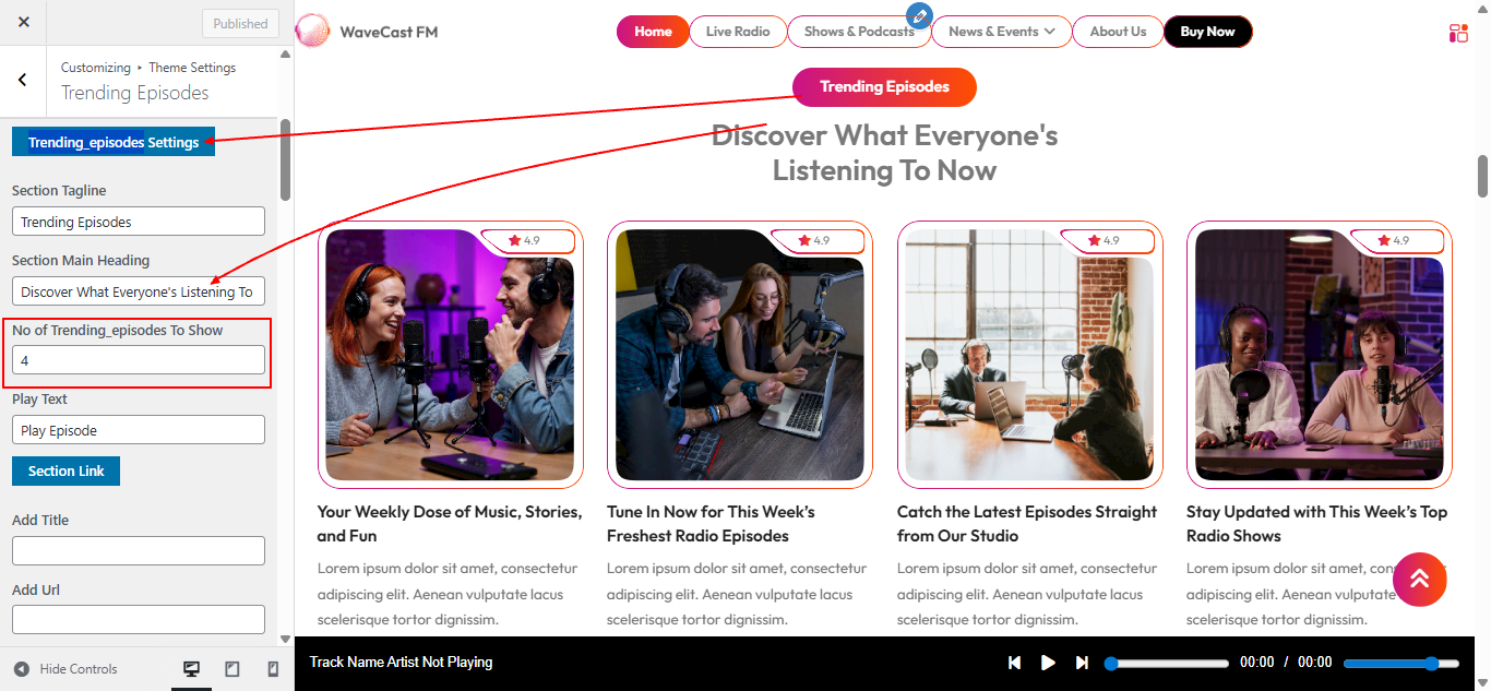 Open "Episode" from the Theme Settings panel in the Customizer.