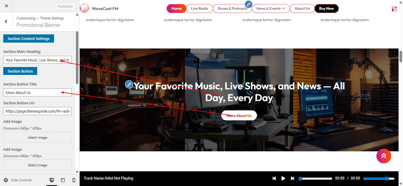 Open "Promotional Banner" from the Theme Settings panel in the Customizer.