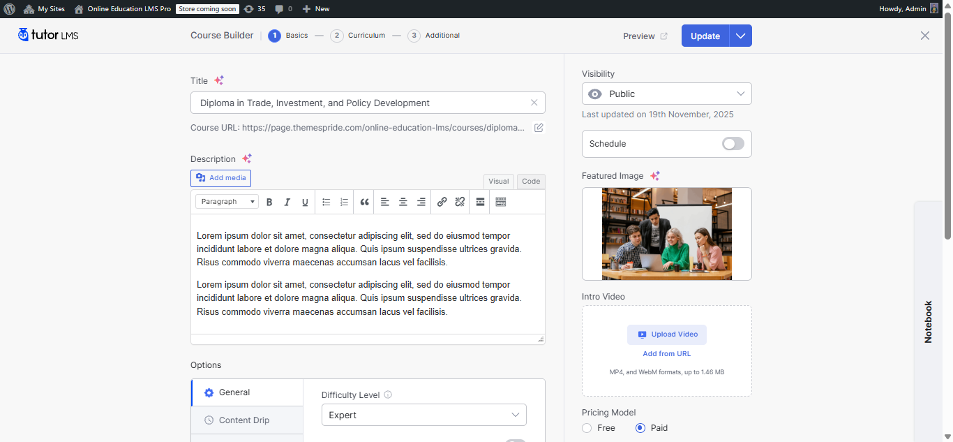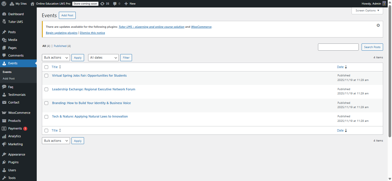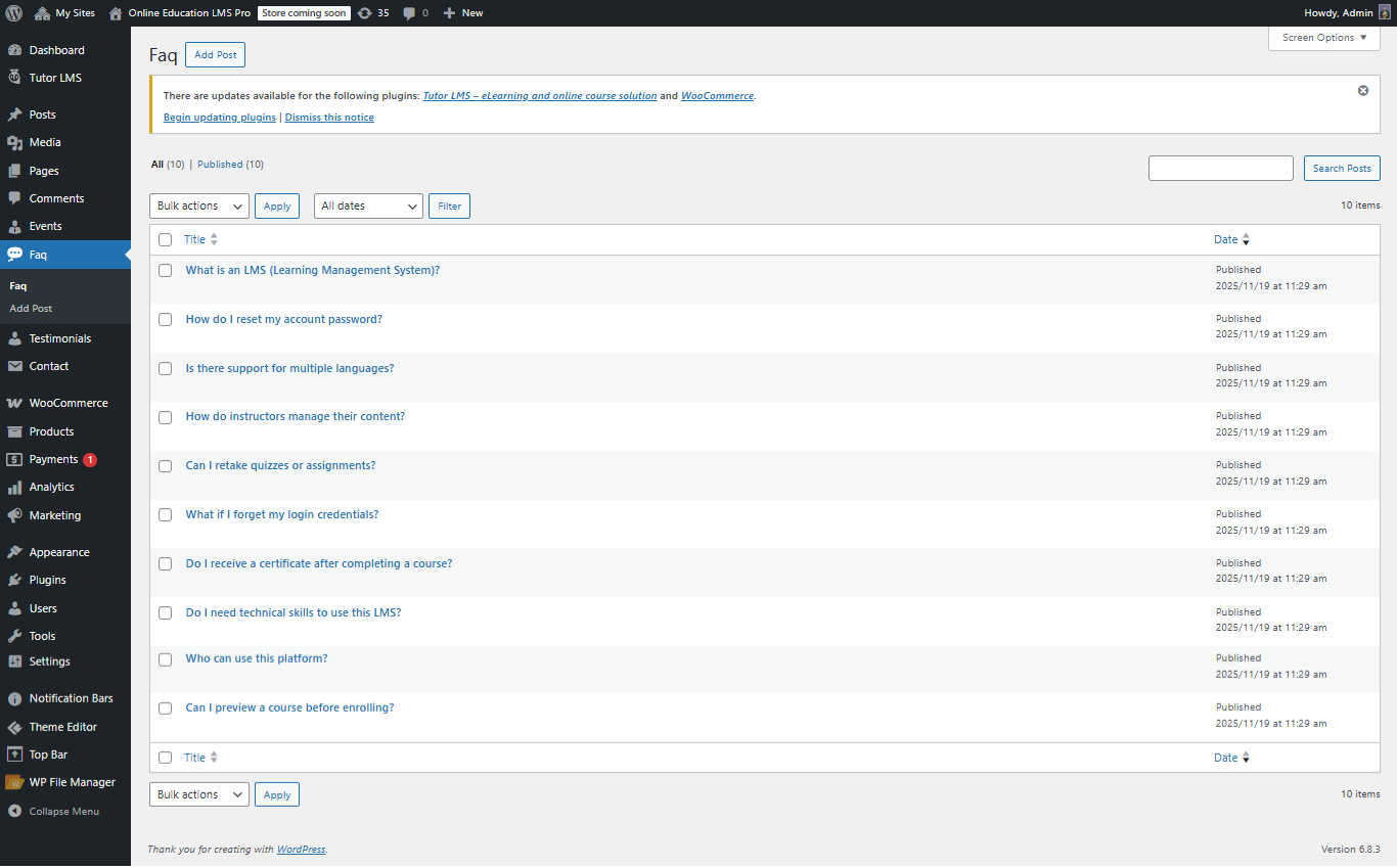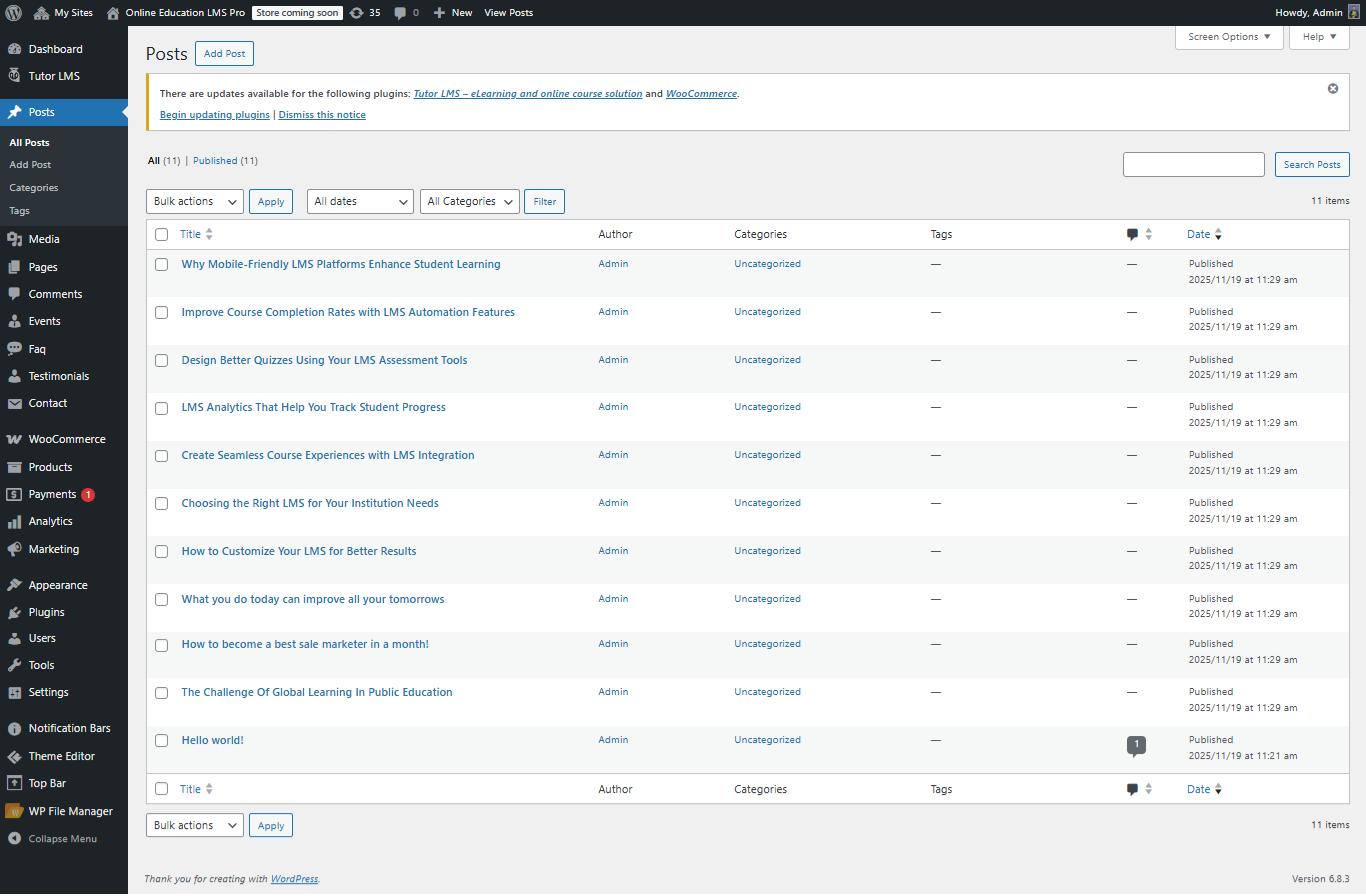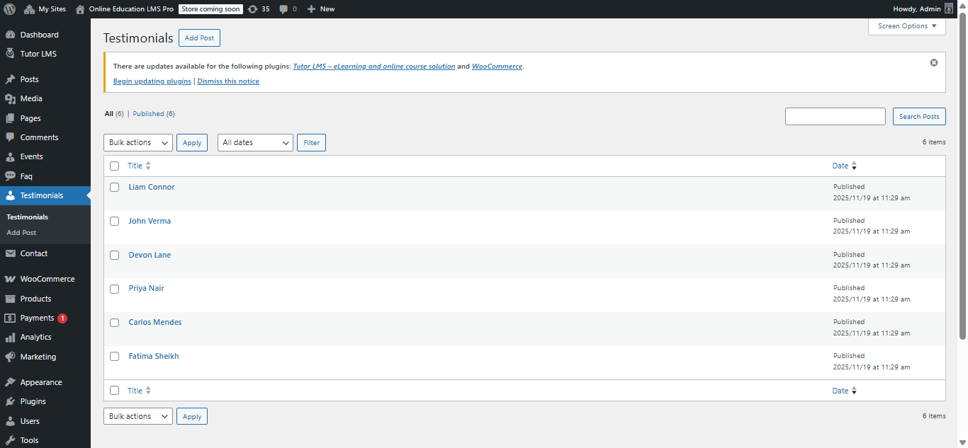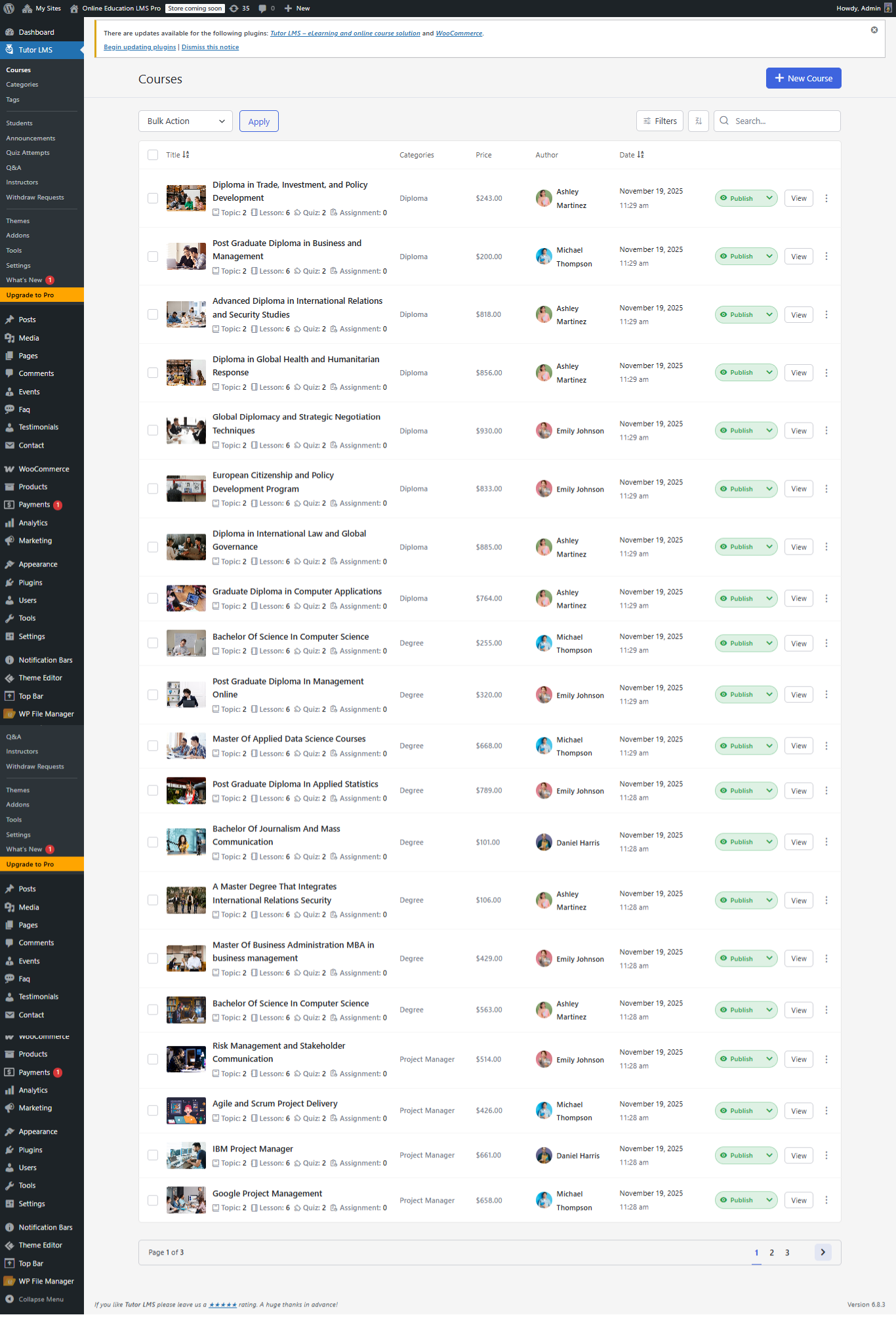 Go to Dashboard → Tutor LMS → Courses to view demo courses.