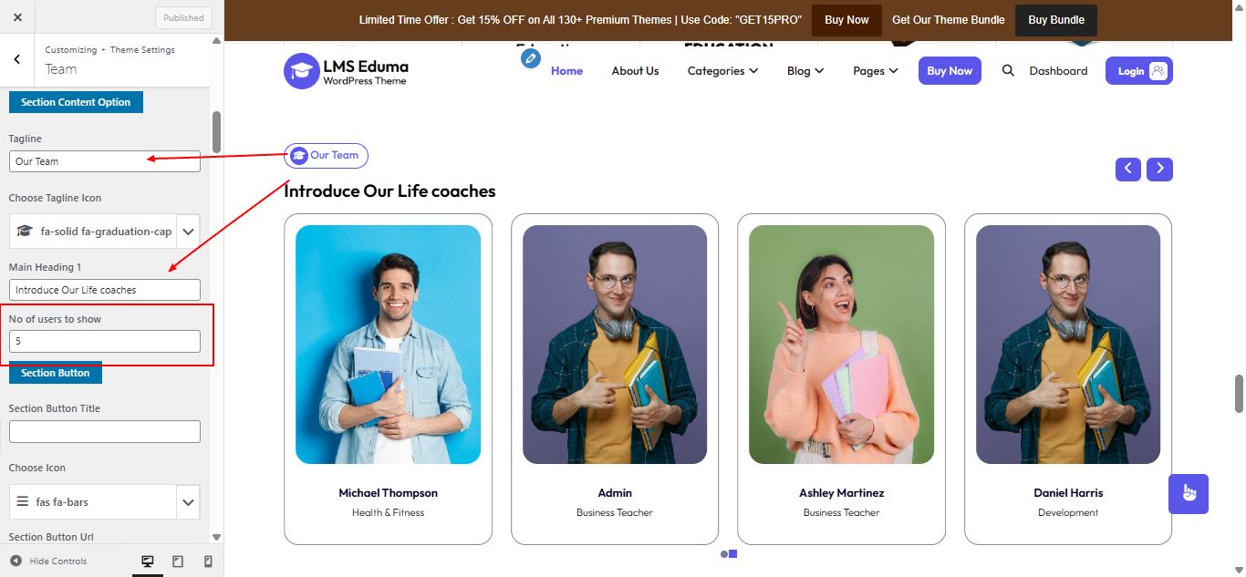 Open "Instructors" from the Theme Settings panel in the Customizer.