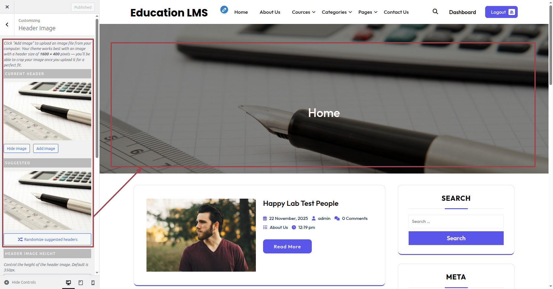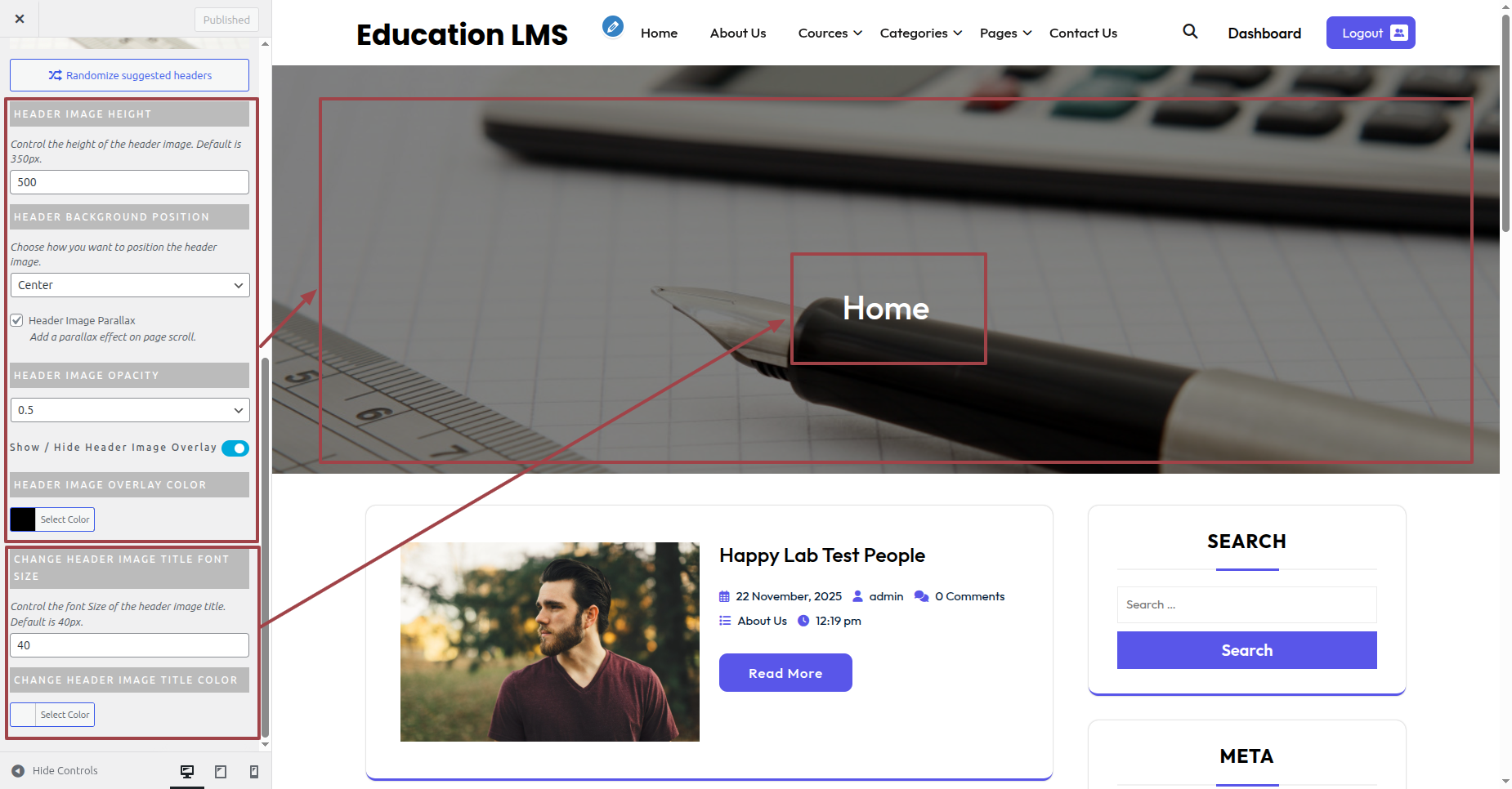 These are the settings for the Header Image. You can make changes to the Header Image.