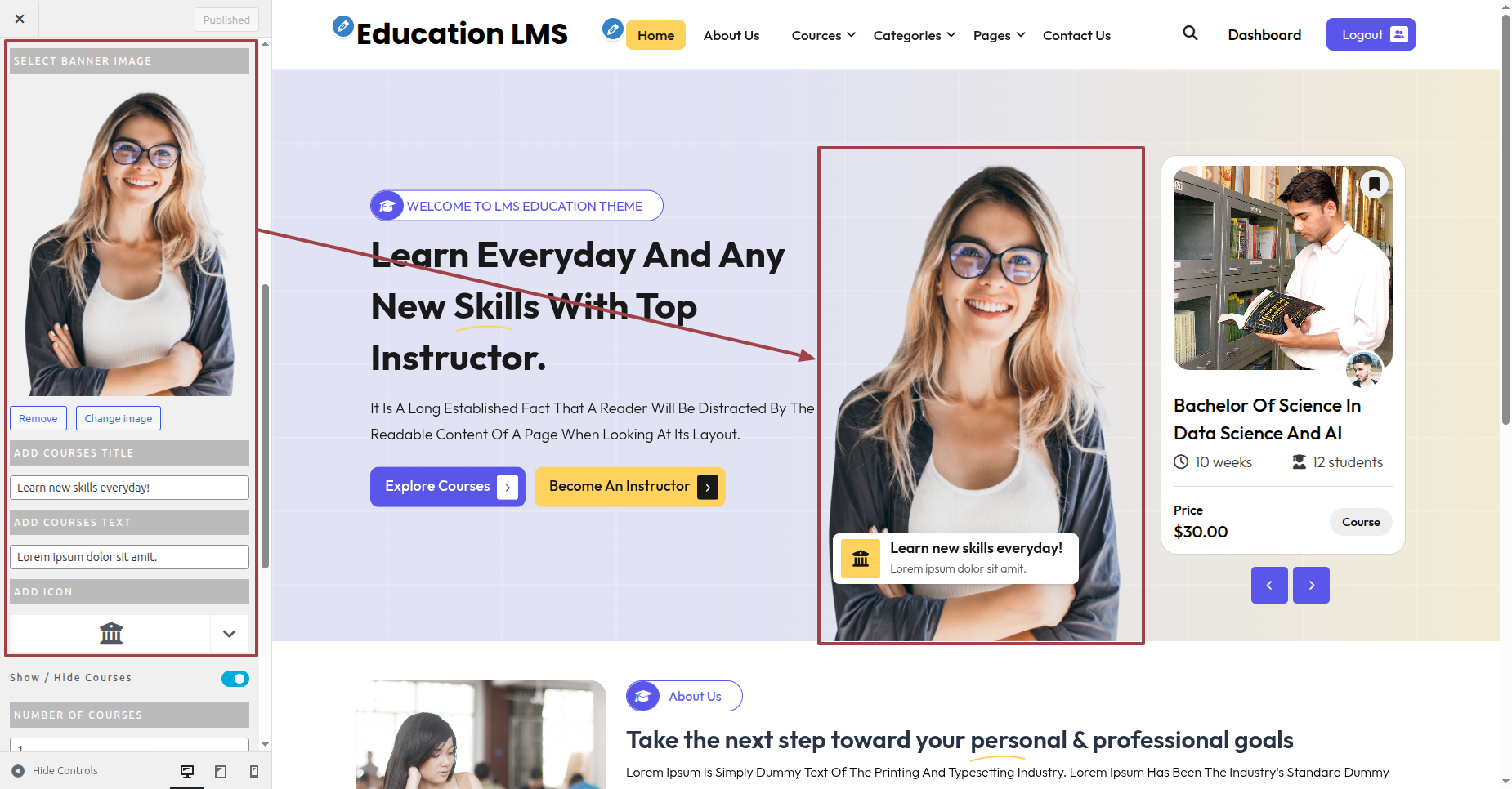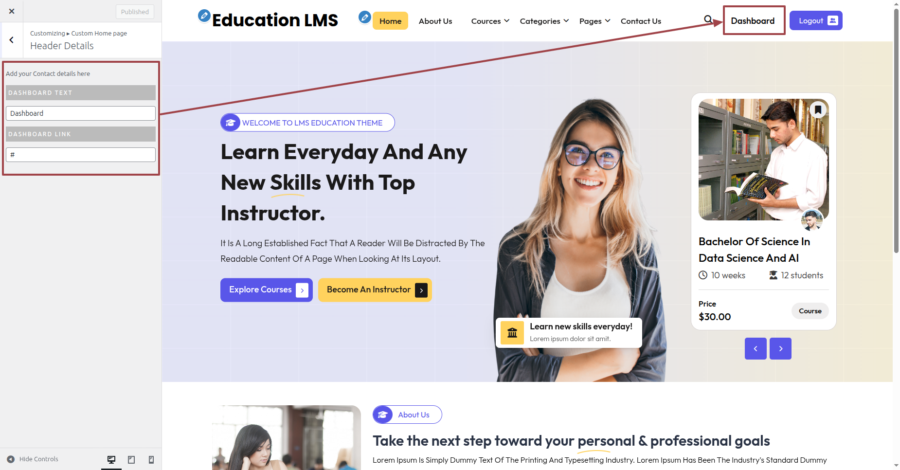 By following these steps you can add the Header Image Section.