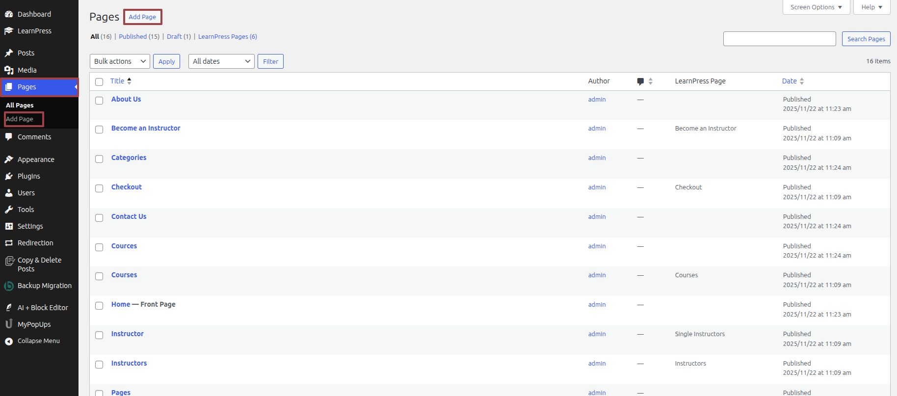 Click Dashboard >> Page >> Add New Page