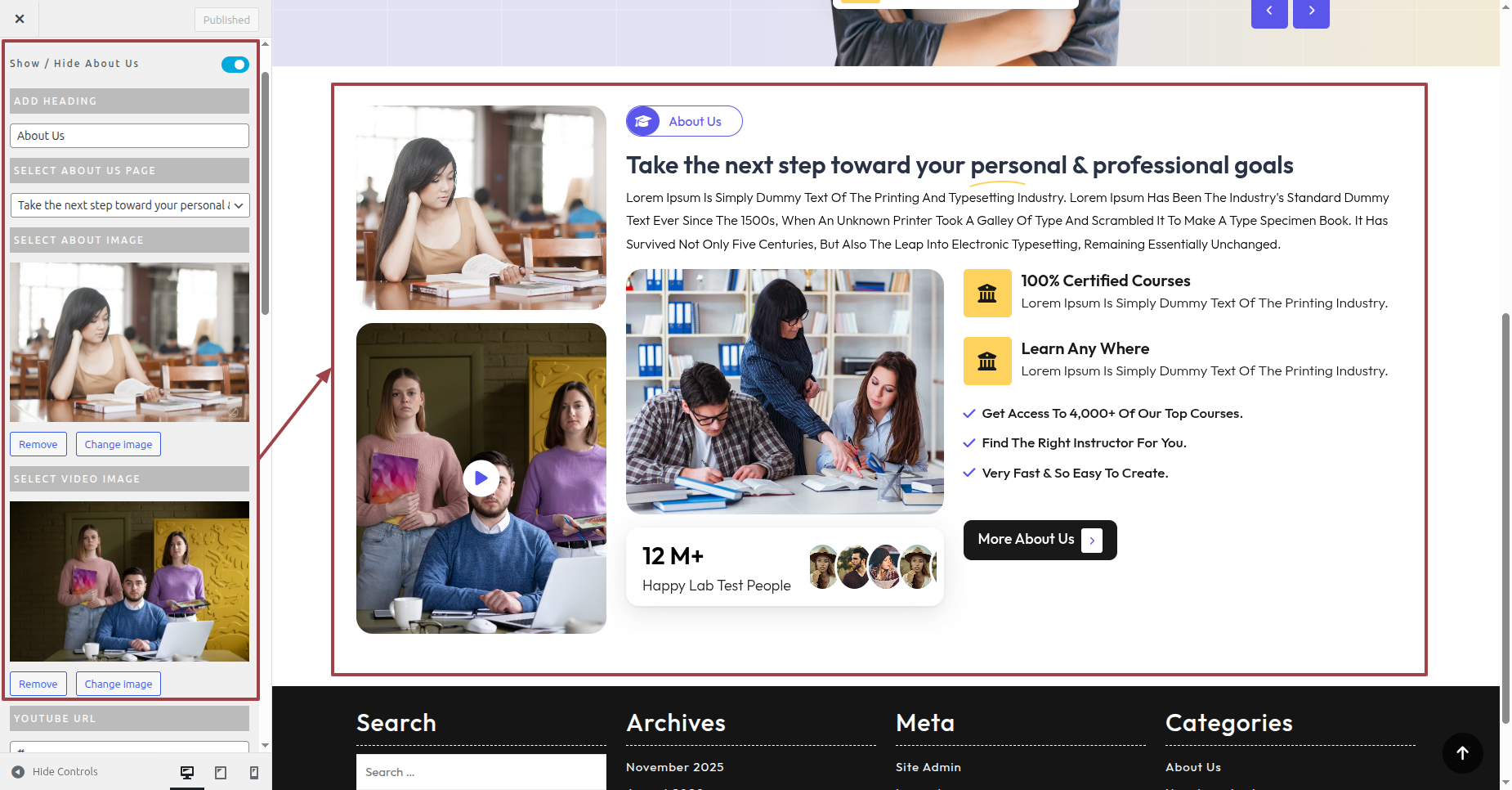 Set-up About Us Section