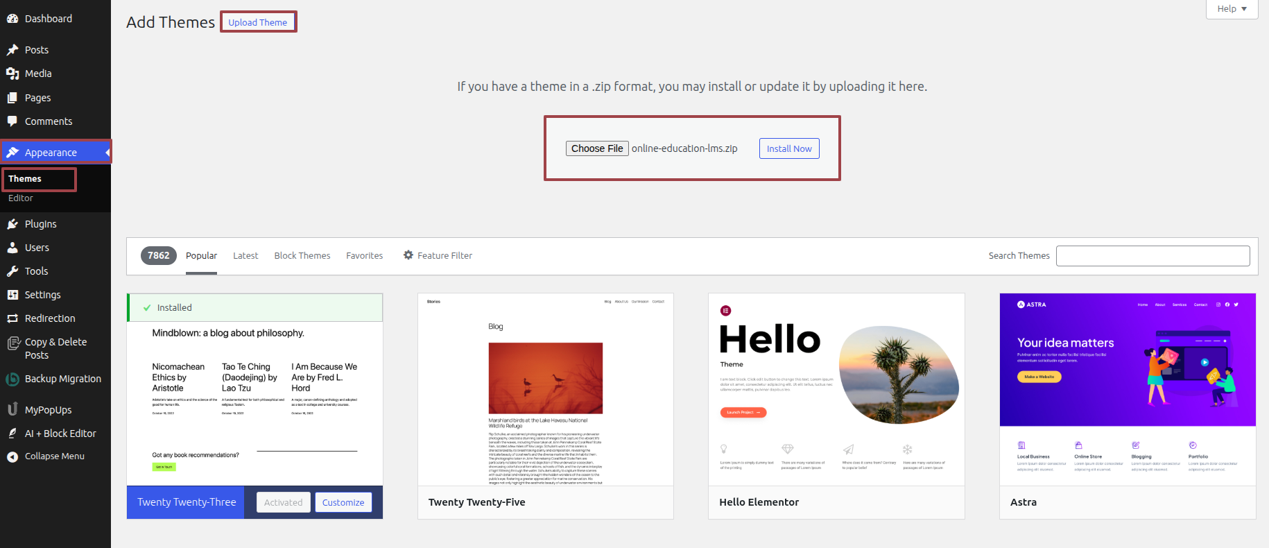 4. Upload the theme
