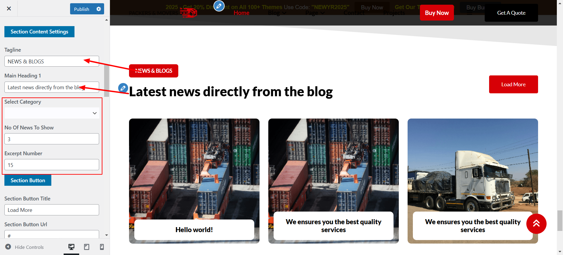 Update section tagline, heading, increase or decreas number of news to show.