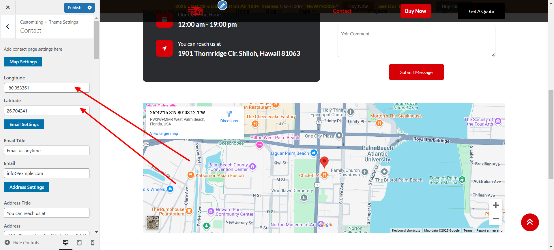 Also update map longitude and latitude.