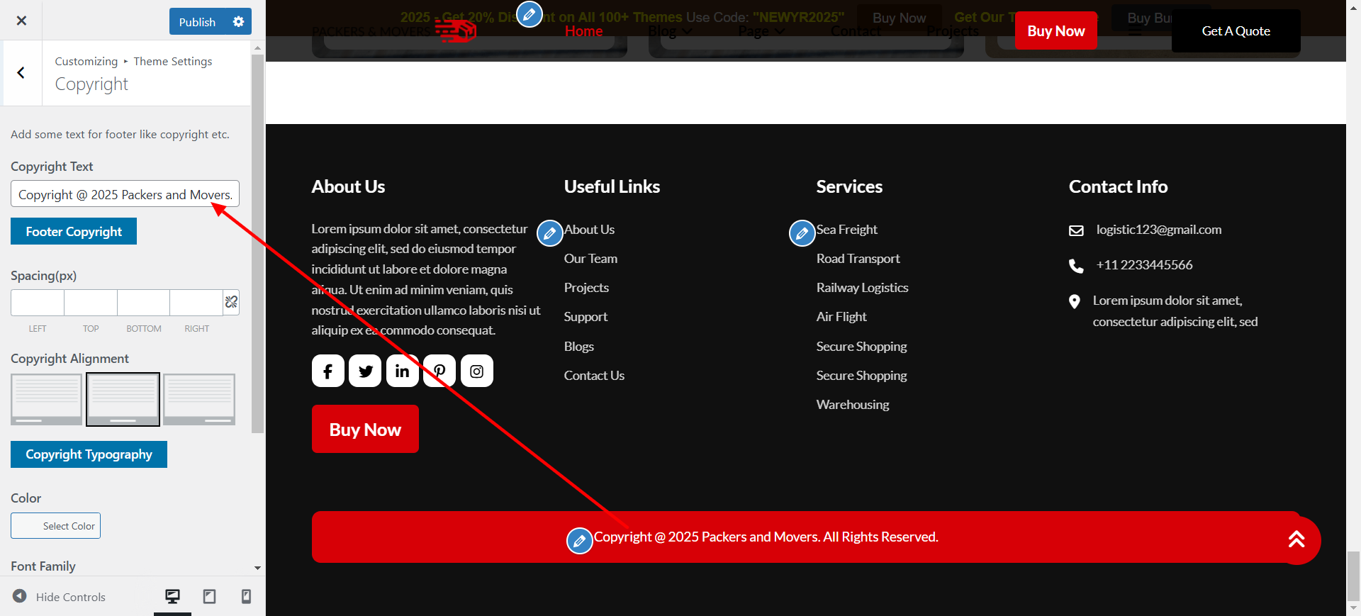 Open Footer present under theme settings pannel