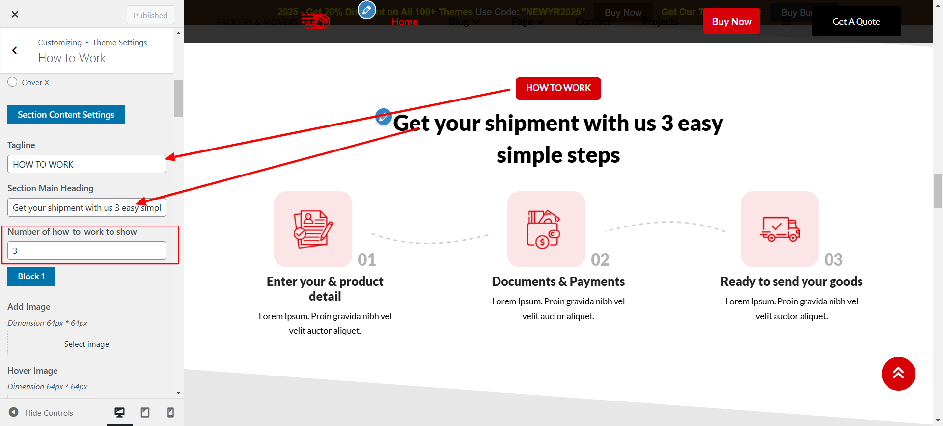 Open How We Work from the Theme Settings panel in customizer.