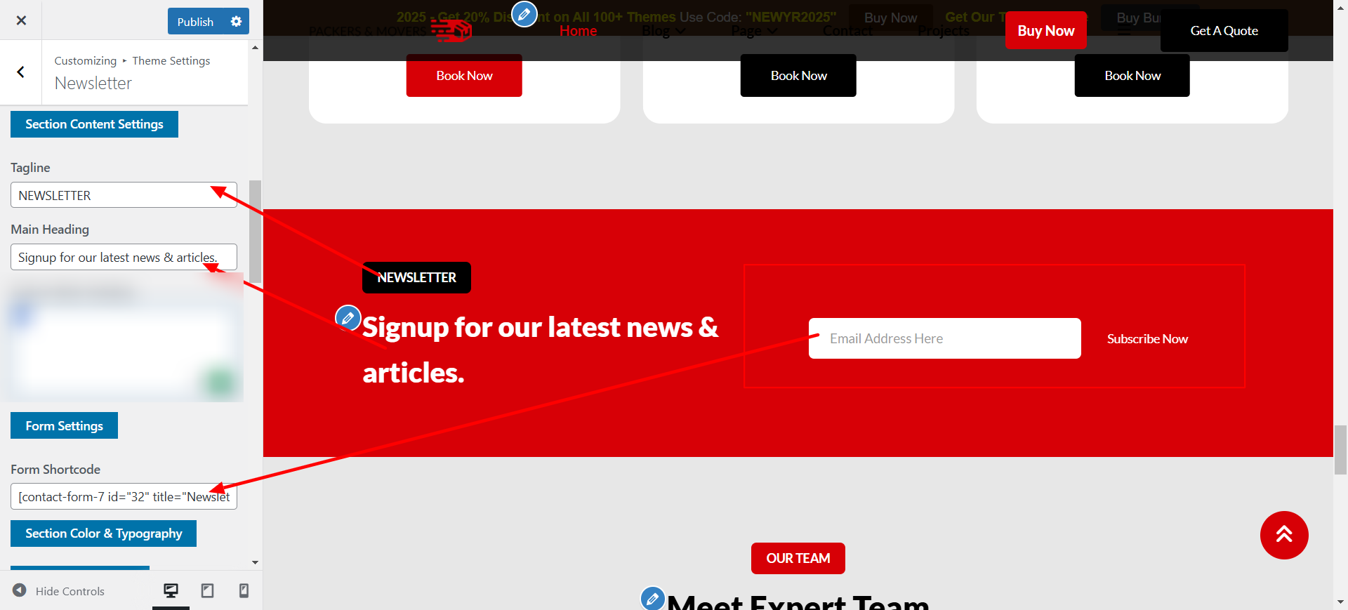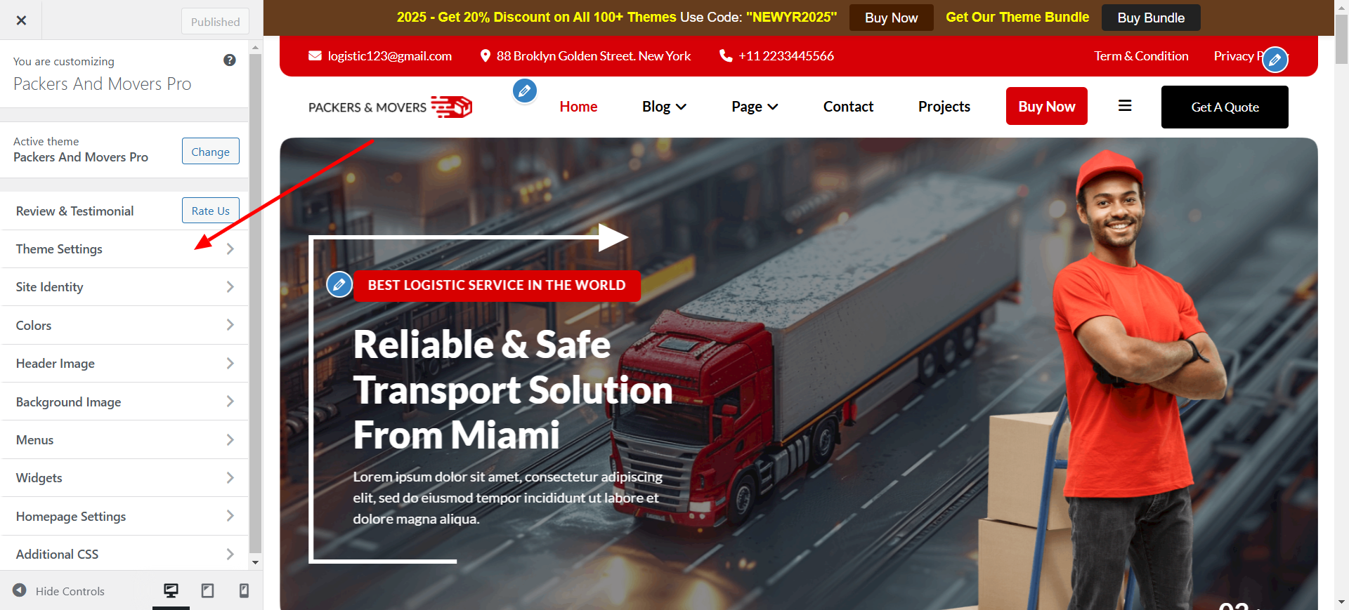 Now start customizing your site as per your requirement. open Appearance - Customize - Theme Settings