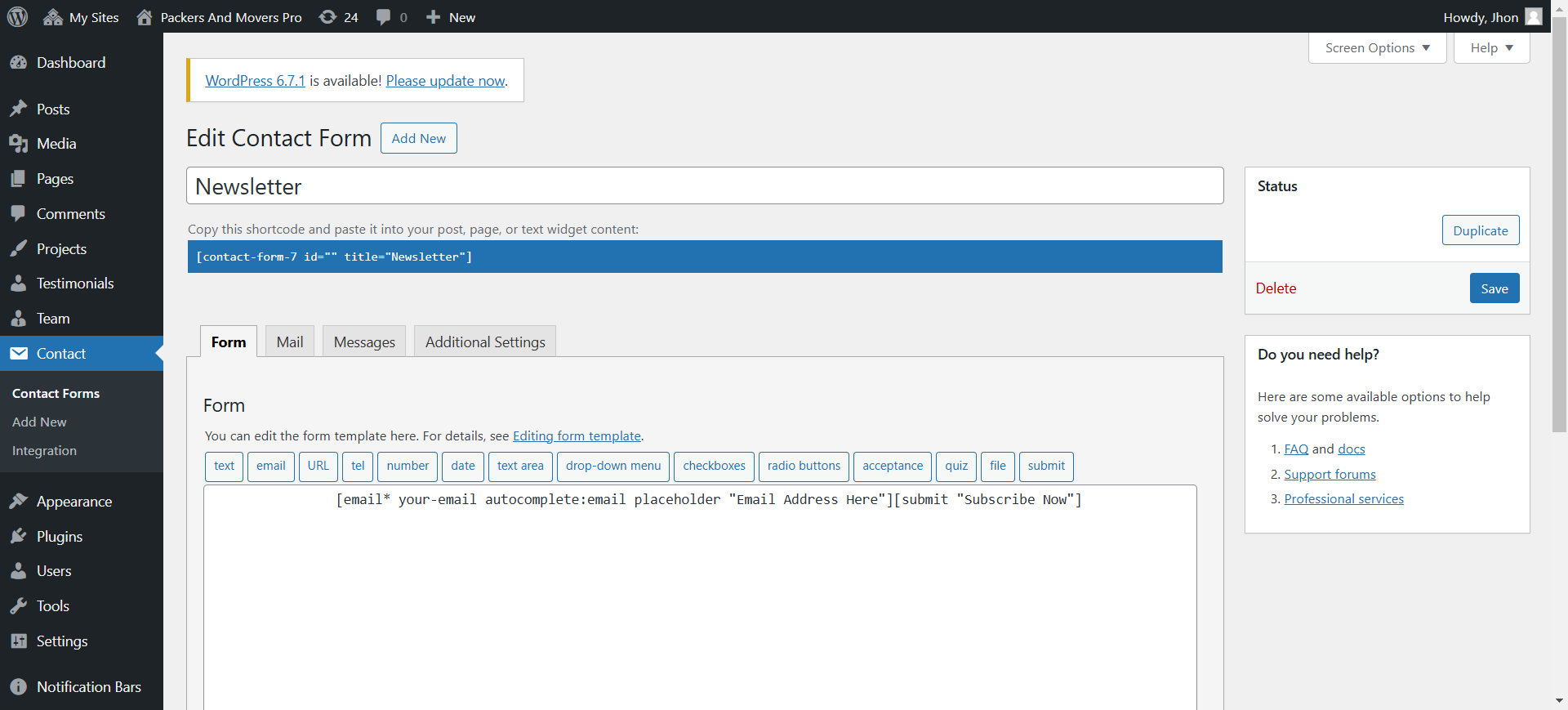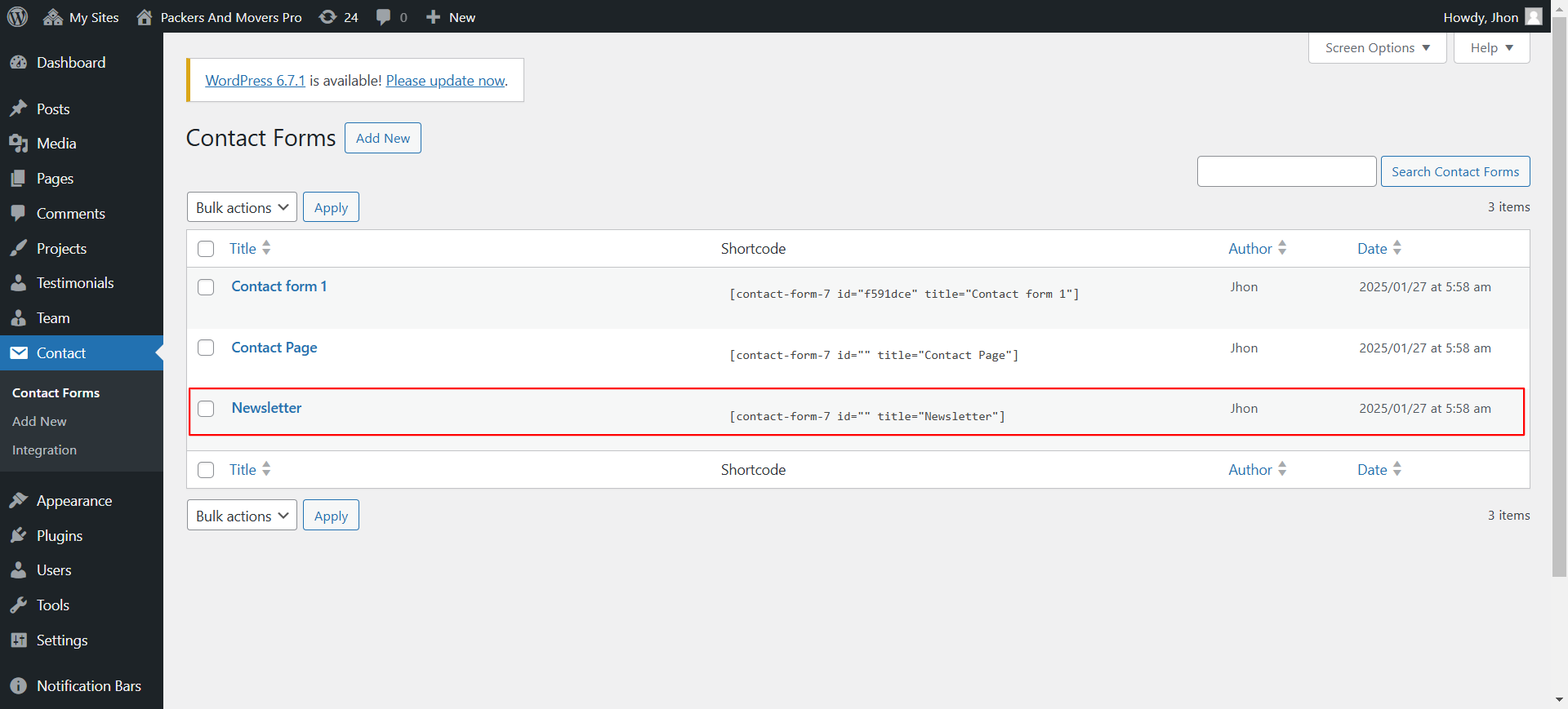 Now open Dashboard - Contact. The "Newsletter" created already. you can change it according to your requirement.