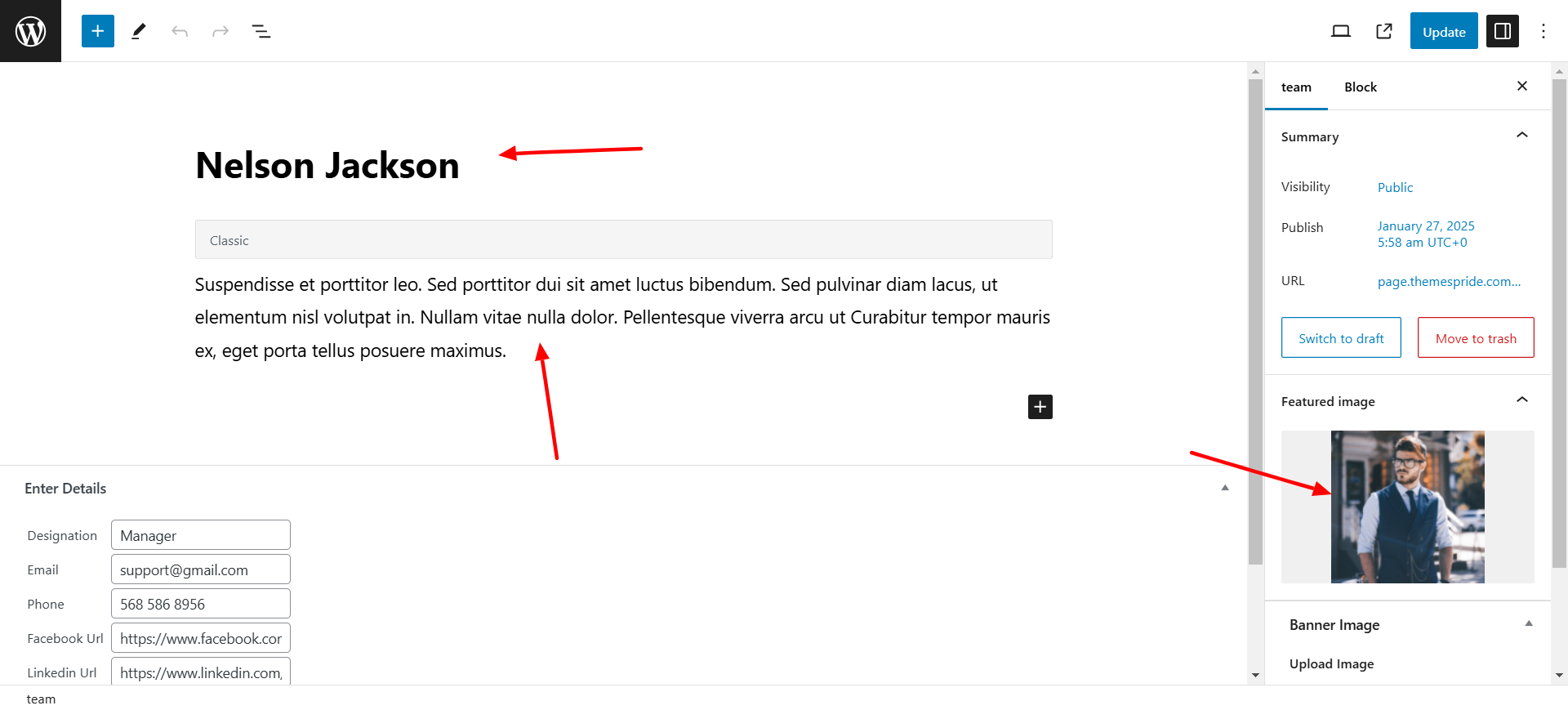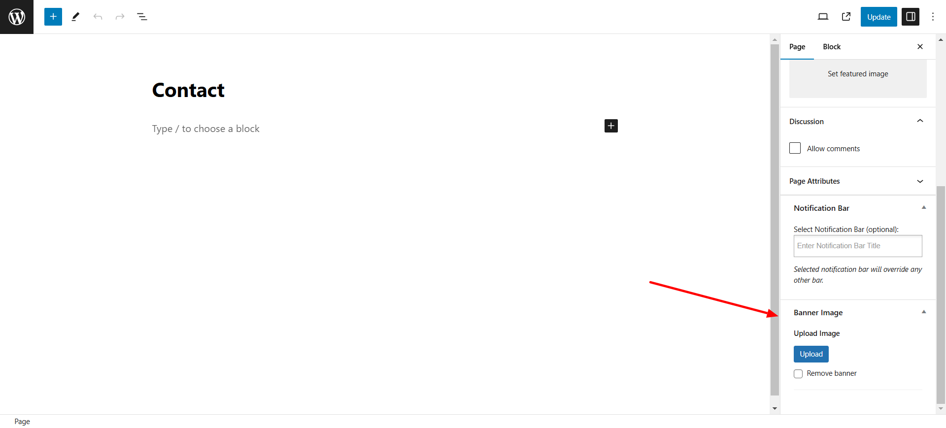 But if you would like add different banner to each pages then you need to add the banner indivisualy to each page. Edit the page for example. we are editing contact page, on the bottom right side column you will see the setting of page banner. Upload the image from here.
