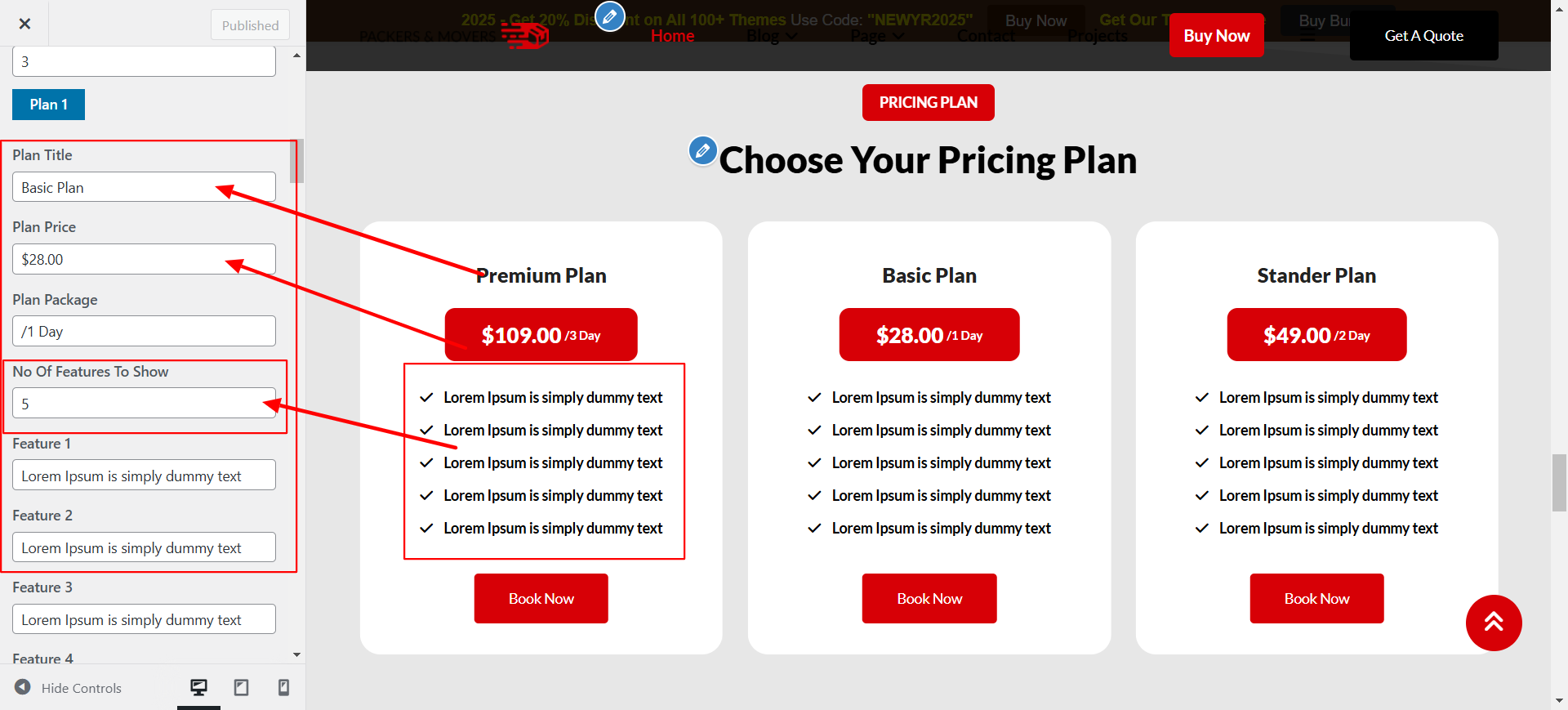 Open "Pricing Plan Settings" present under the "Theme Settings" panel in customizer.